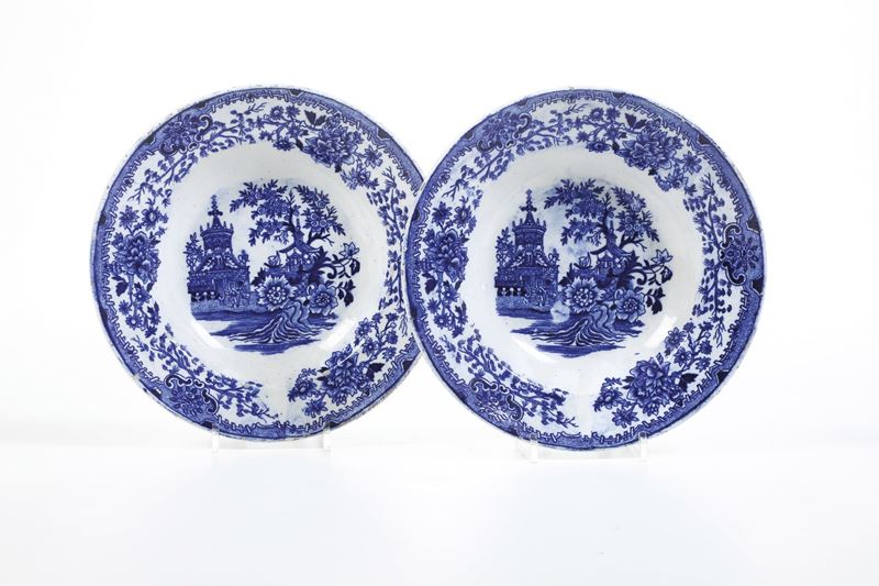 Coppia di piatti fondi "Colandine". Inghilterra, Manifattura Primavesi & Sons, XIX secolo.