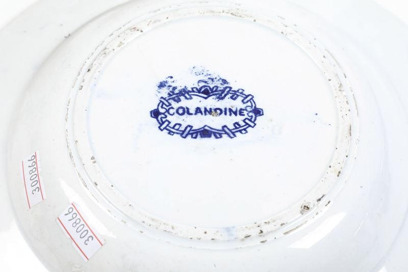 Terraglia. Marca: simbolo grafico con "Colandine". Diametro cm 24,2. Conservazione: ottima; piccole usure ai bordi.