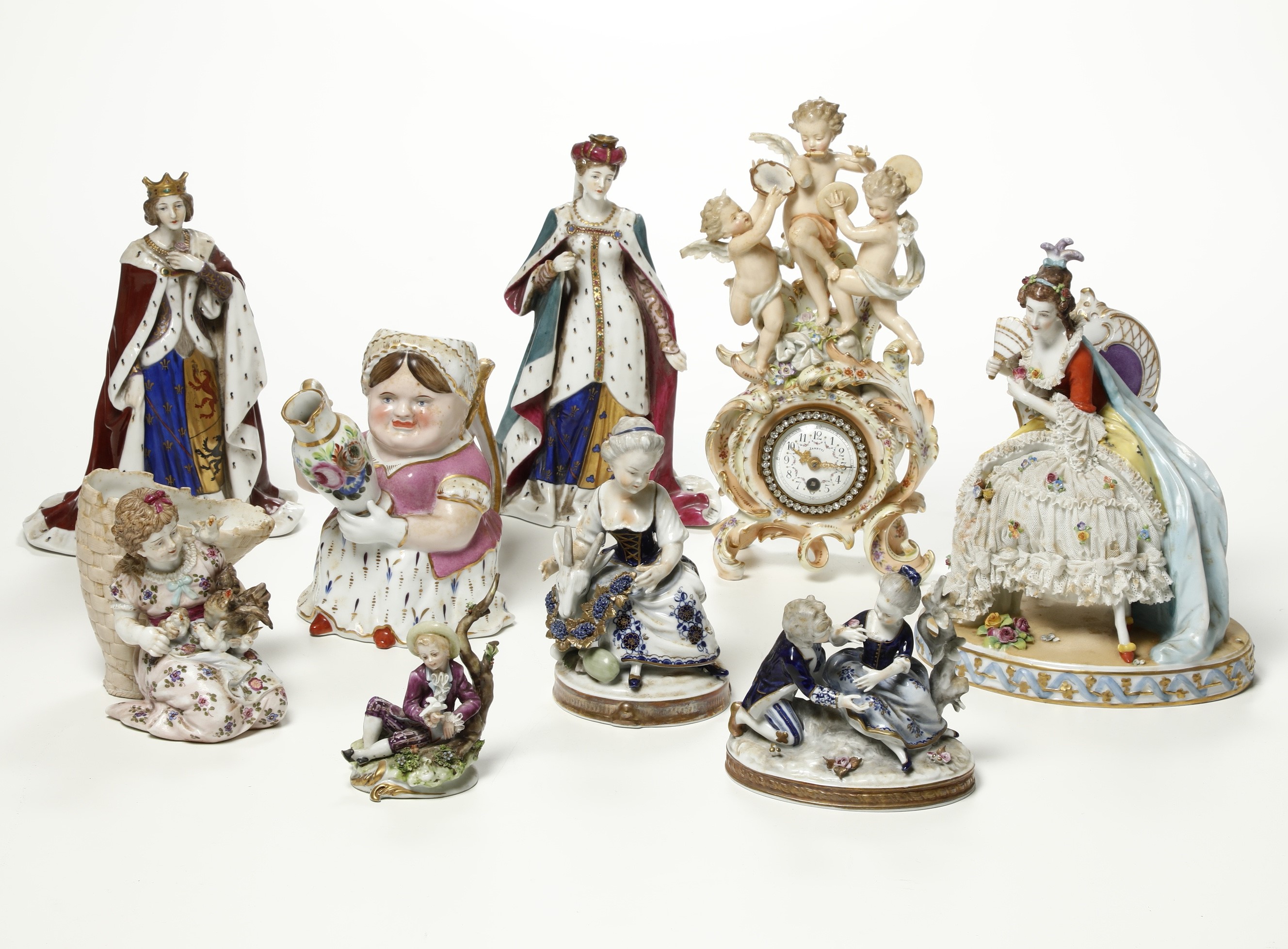 Diverse figurine e un orologio, XX secolo.