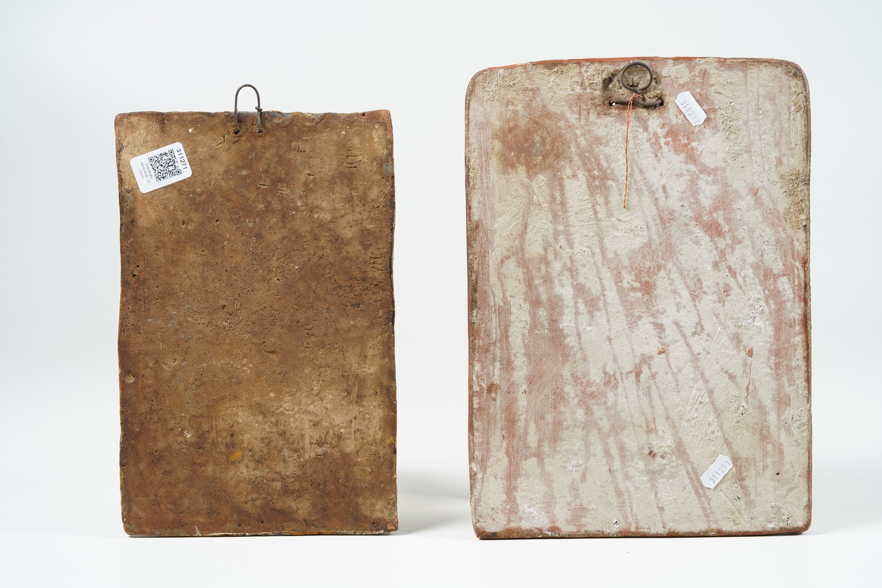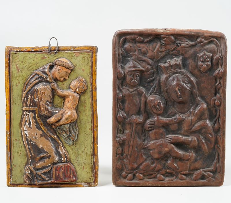 Terracotta. Dimensioni: altezza cm 33x24; cm 30x19,5. Conservazione: salti alla policromia.