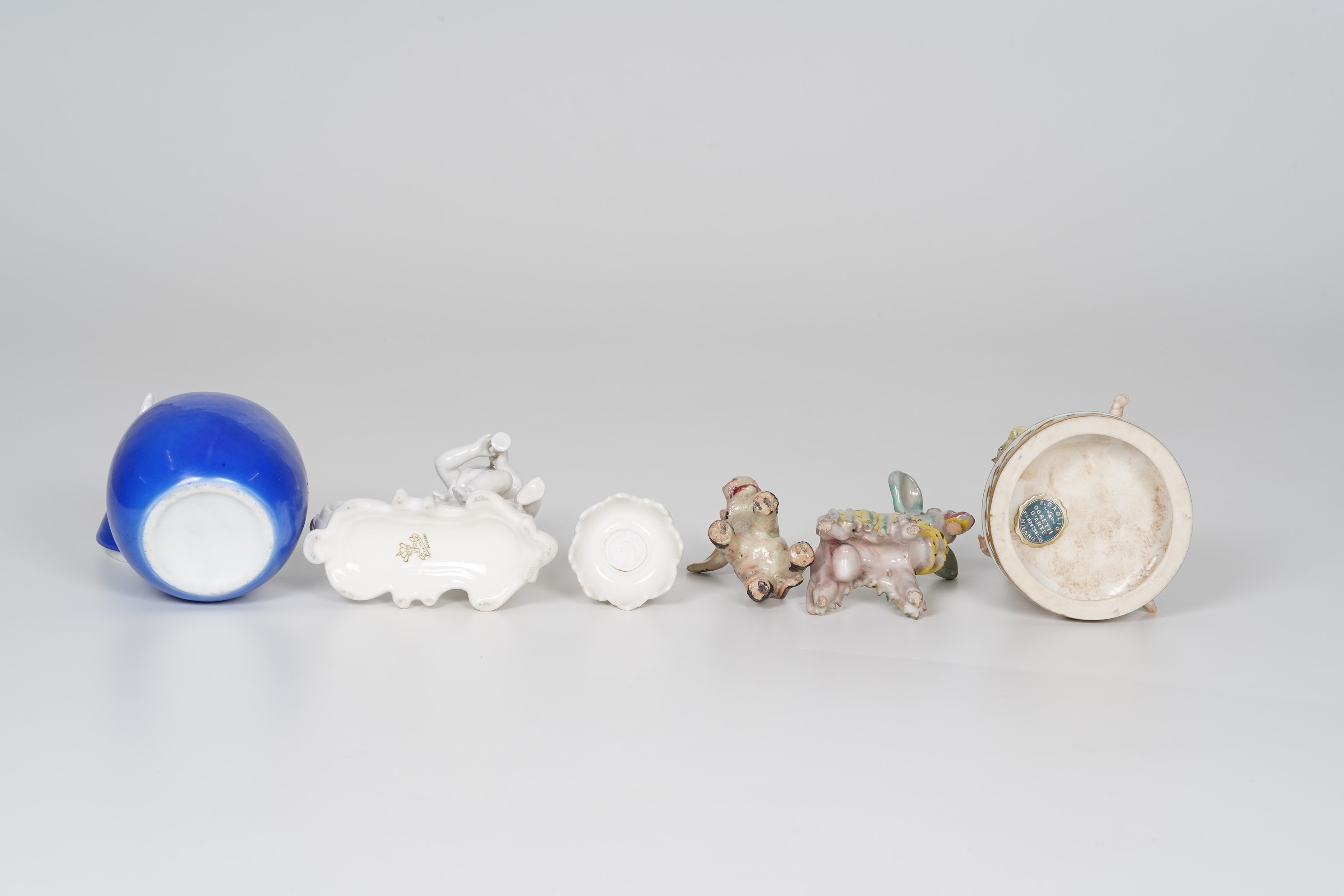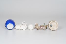 Porcellana e maiolica. Altezza massima cm 15. Conservazione: ottima; qualche piccola mancanza.