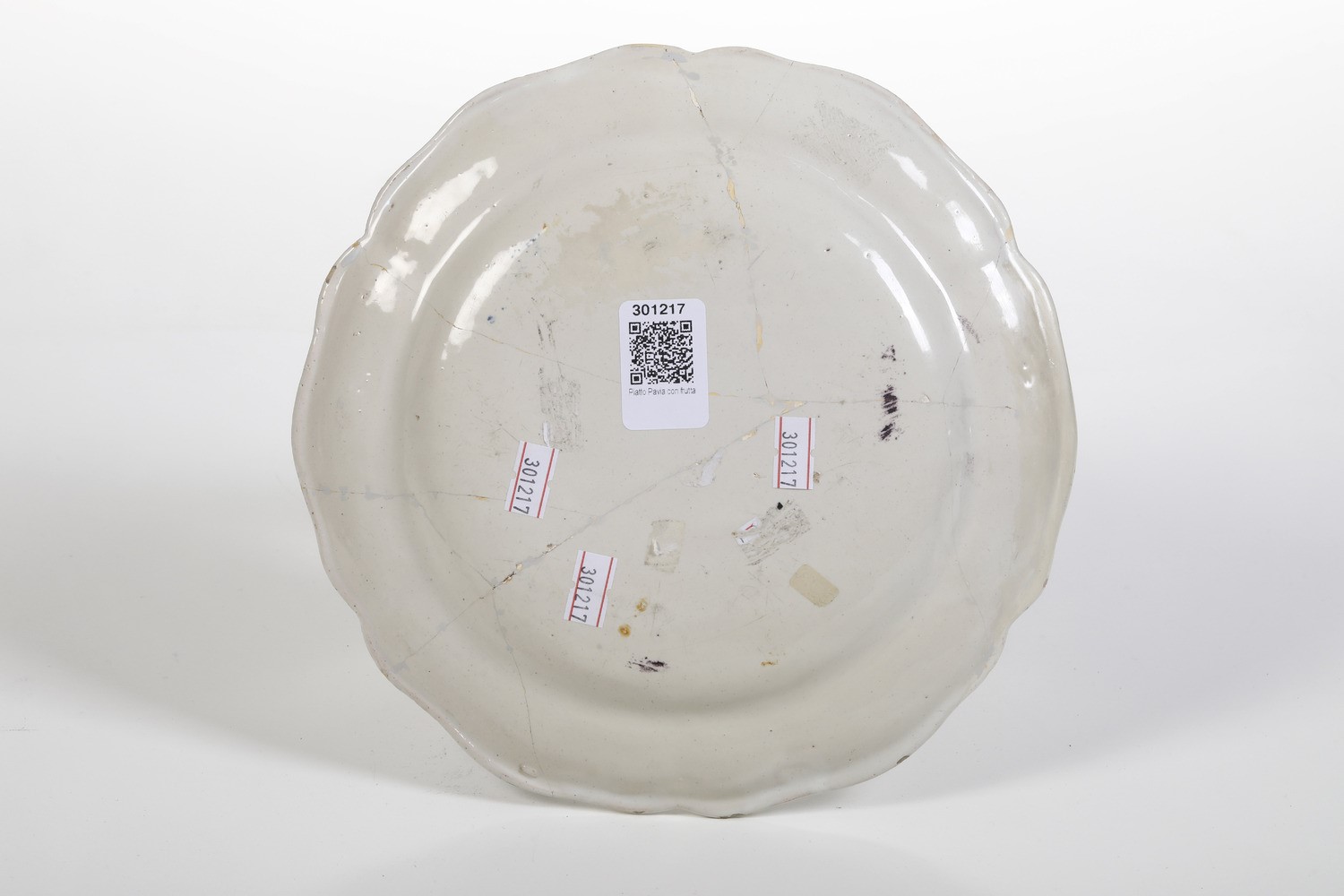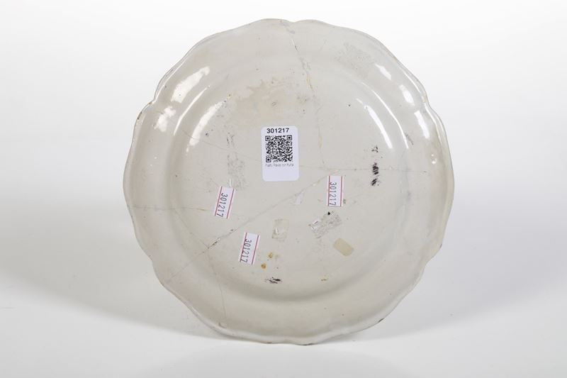 Maiolica. Marca: assente. Diam. cm 23,7. Conservazione: rotto in più frammenti e ricomposto in restauro.