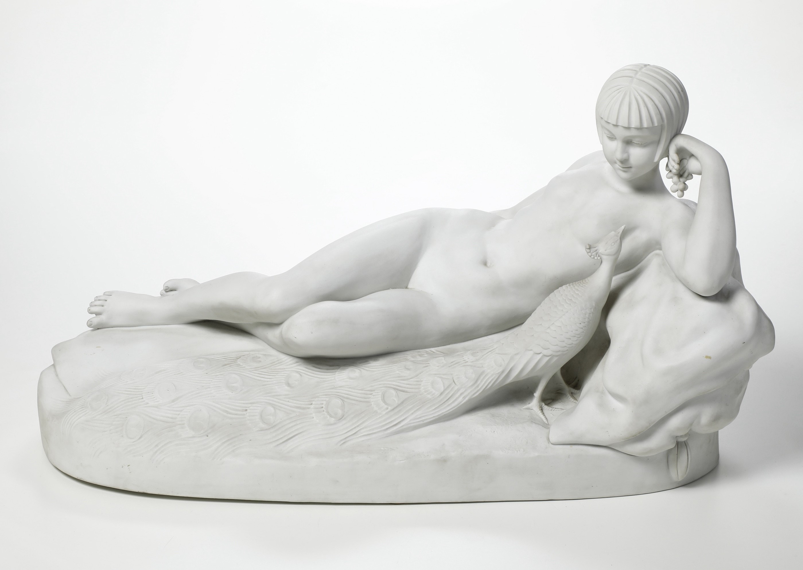 La dea conosciuta anche con il nome greco di Hera, era la moglie di Zeus (Giove), venerata come la protettrice del matrimonio e della fecondità. In quest'opera è raffigurata sdraiata e accompagnata dal pavone suo animale simbolo.