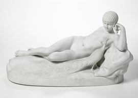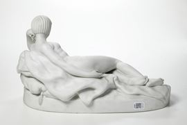 Porcellana biscuit. Marca: simbolo grafico con "V" e firma "A.Brache", incisi. Dimensioni: altezza cm 31; cm 54x29. Conservazione: otiima; piccola sbeccatura ad un dito del piede.