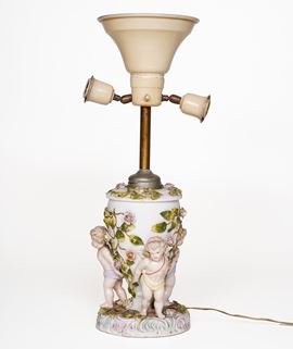 Vaso montato a lampada. Germania, Manifattura di Sitzendorf, primi decenni del XX secolo.