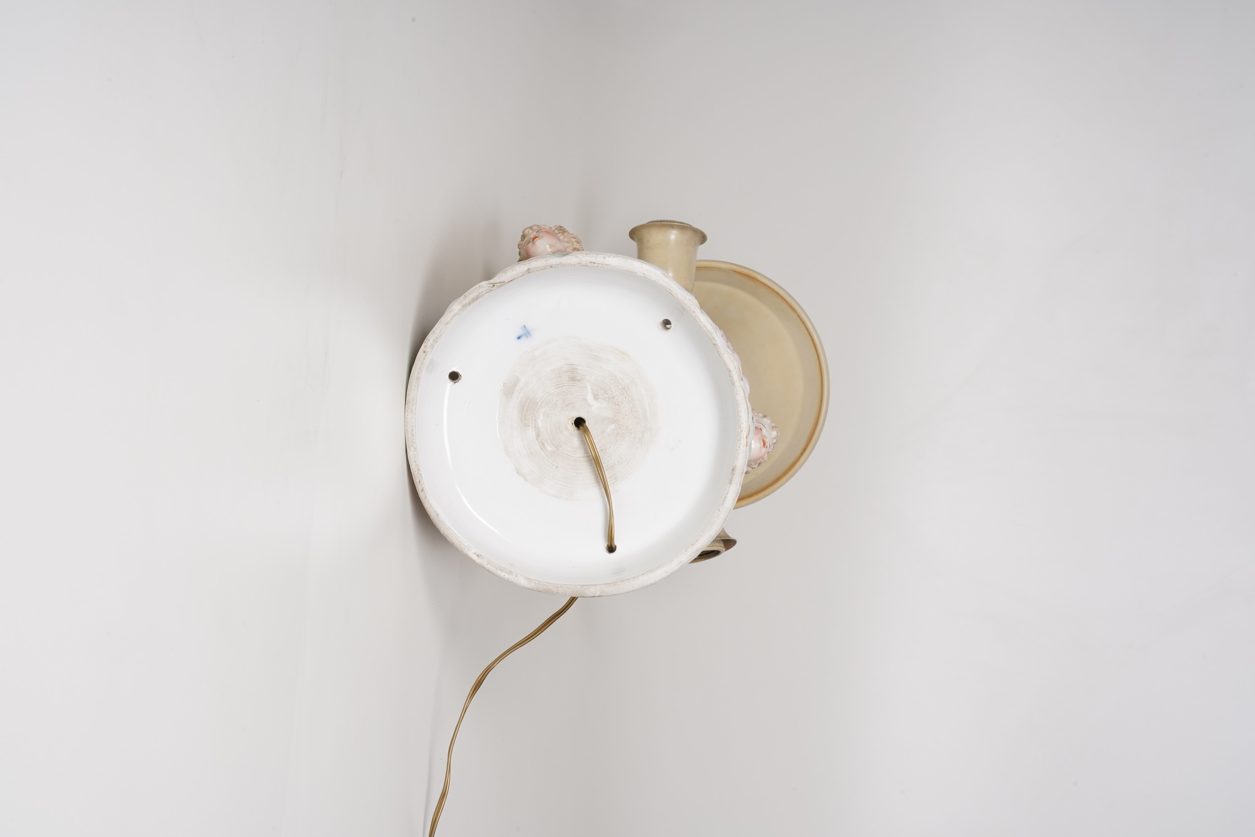 Porcellana e metallo. Altezza totale cm 57. Conservazione: due teste incollate; mancanze minori.