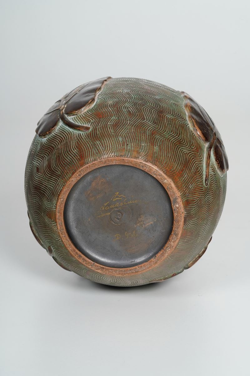 Terracotta smaltata. Marca: simbolo grafico con "ZU Zaccagnini"; "D.956". Altezza cm 26,7. Conservazione: usure di smalto.
