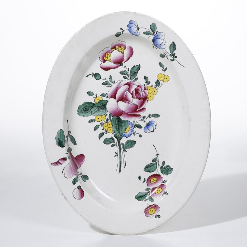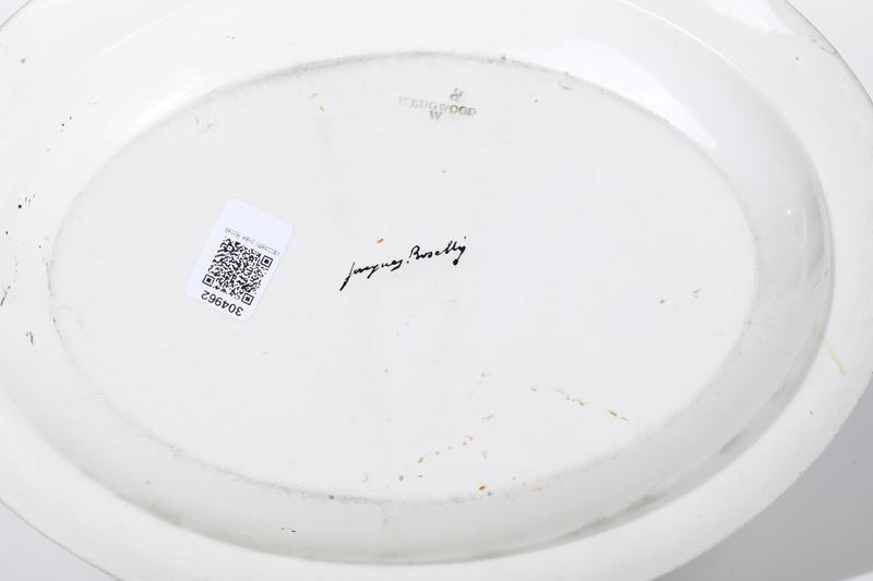 Terraglia. Marca: "Wedgwood" impressa per la terraglia; "Jaques Boselly" per la decorazione. Dimensioni: cm 36,6x 27,8. Conservazione: ottima.