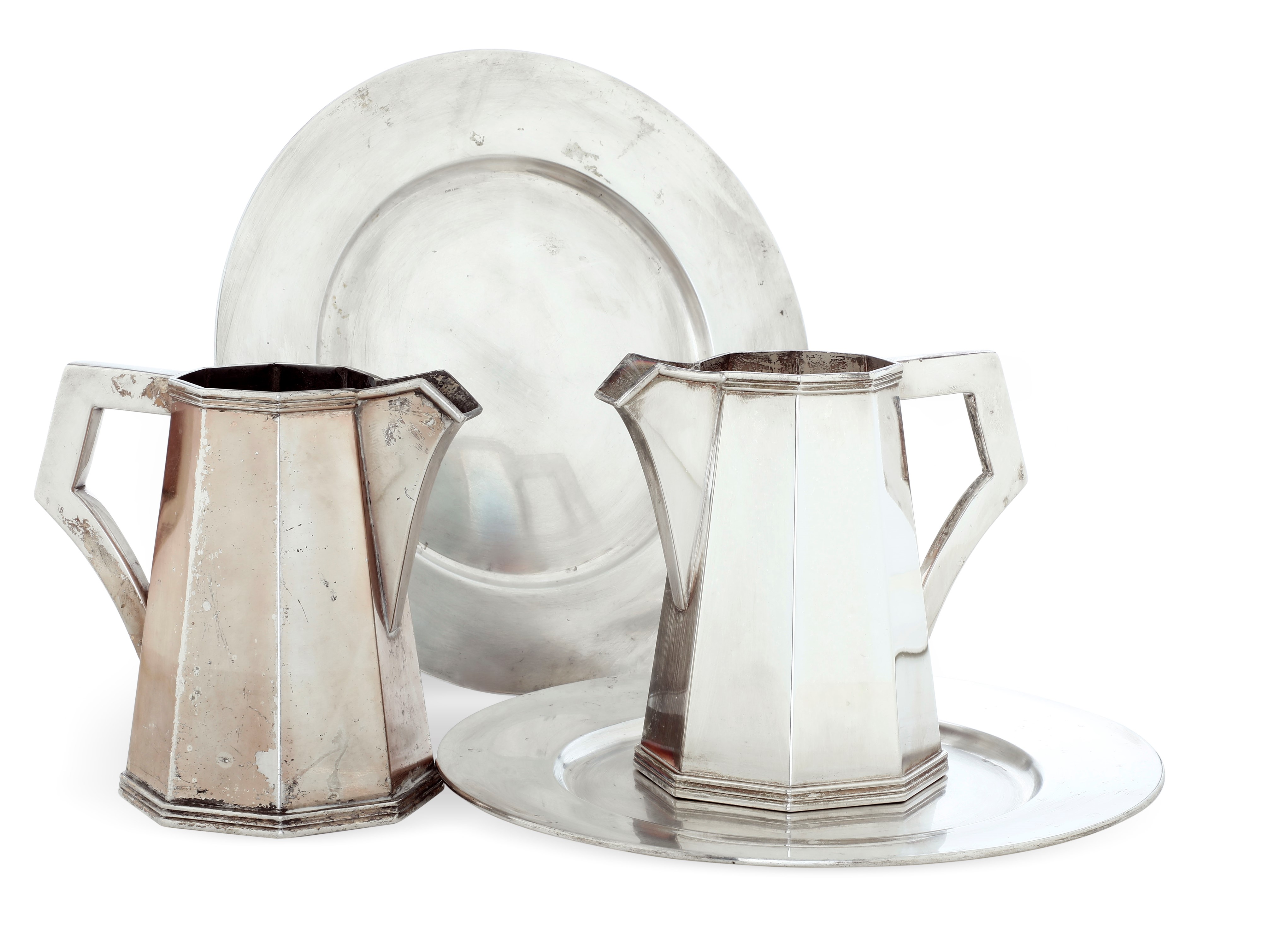 Coppia di brocche con piatti. Argenteria siciliana del XX-XXI secolo