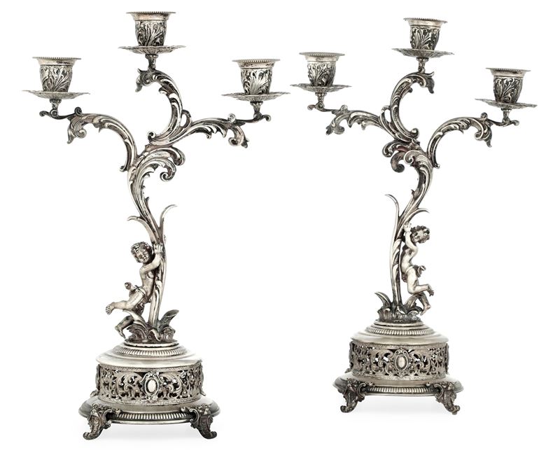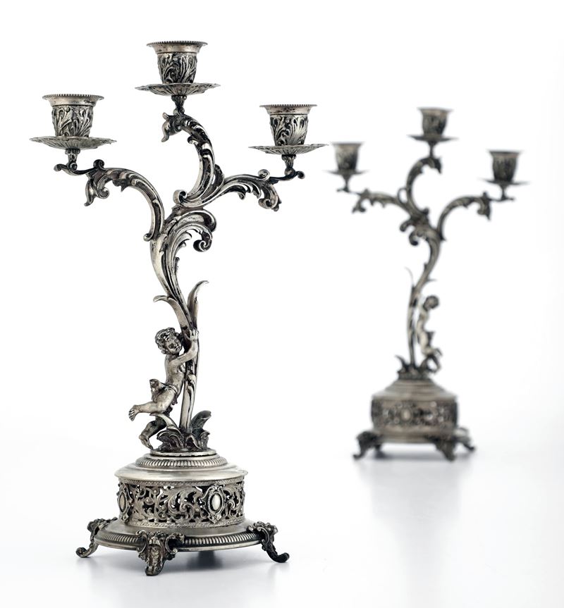 Coppia di candelabri. Argenteria milanese del XX secolo, argentiere Gaetano Tadiello