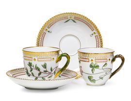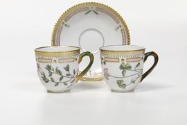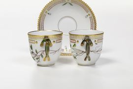 Coppia di tazze da caffè dal servizio Flora Danica Danimarca, Manifattura Royal Copenhagen, 1969-1974