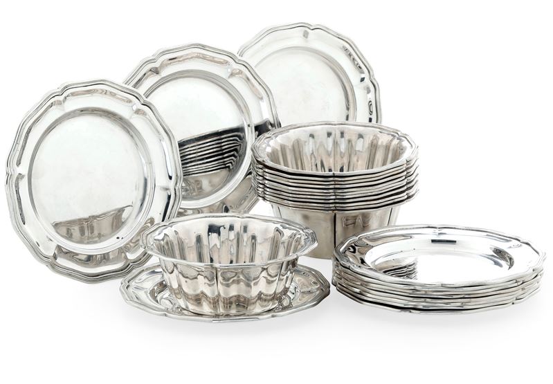 Dodici ciotole lavadita con piattini. Argenteria italiana del XX secolo. Argentiere Rino Greggio, Padova