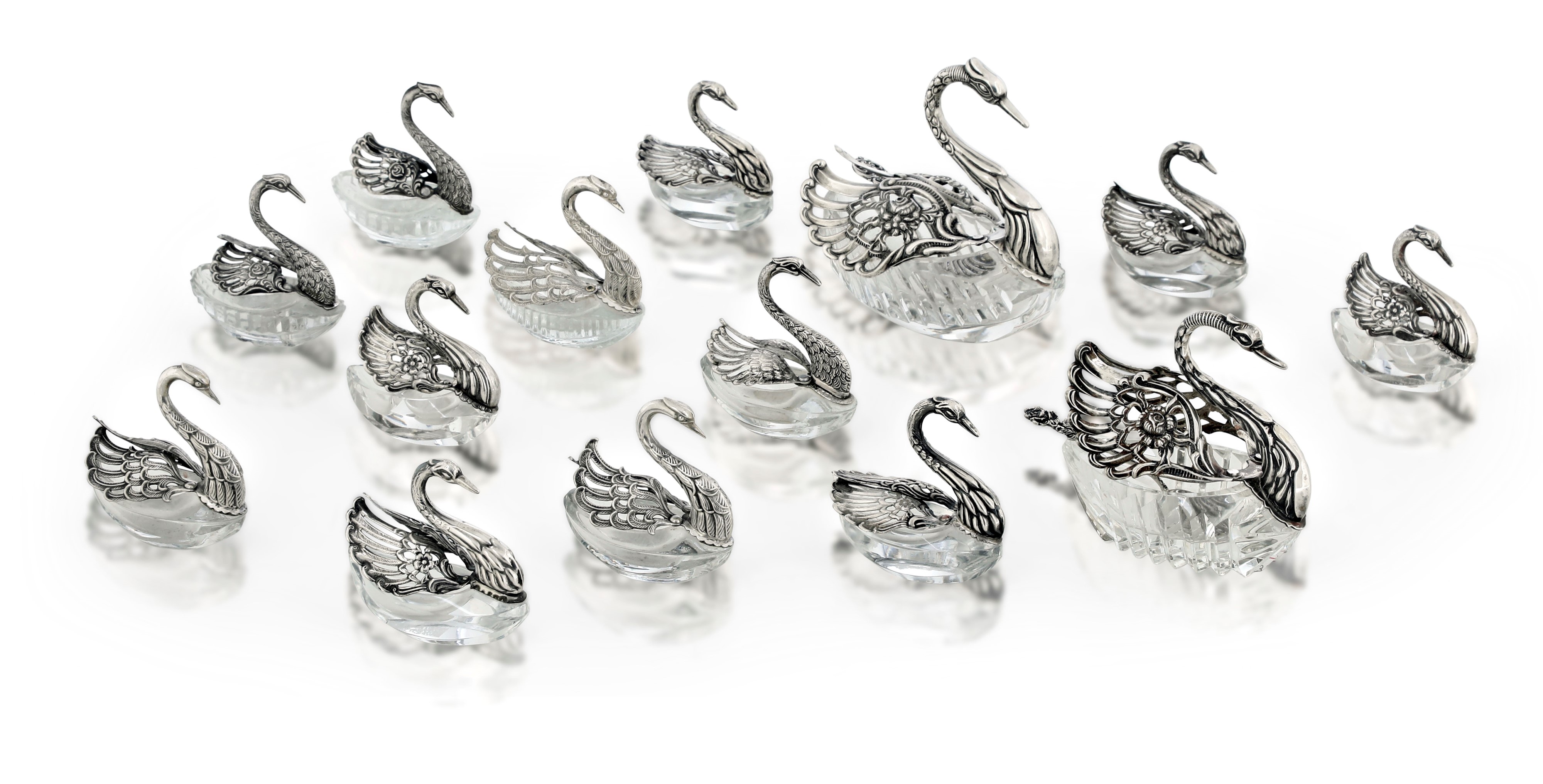 Dodici salini a forma di cigno e due formaggere. Argenteria fiorentina del XX-XXI secolo