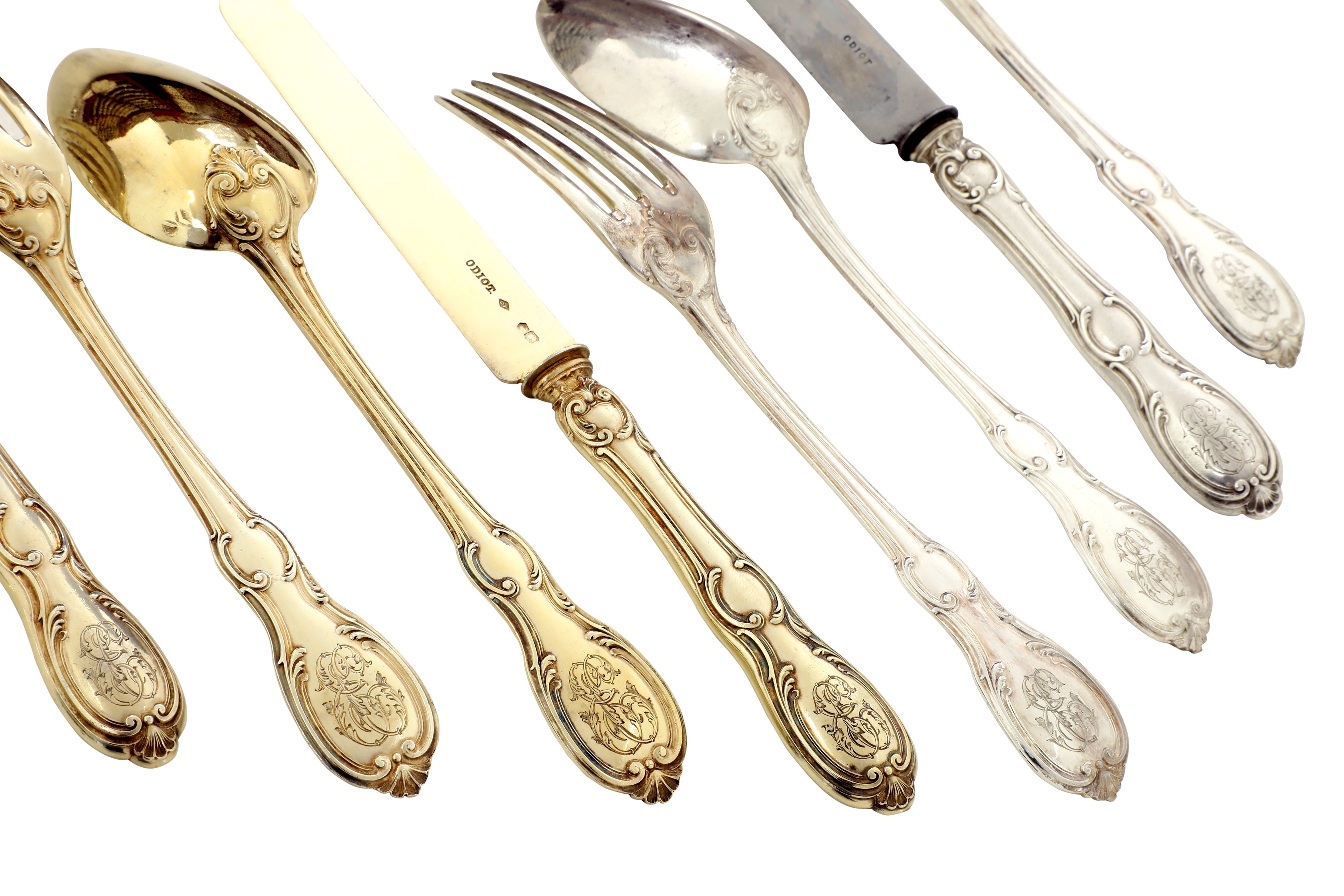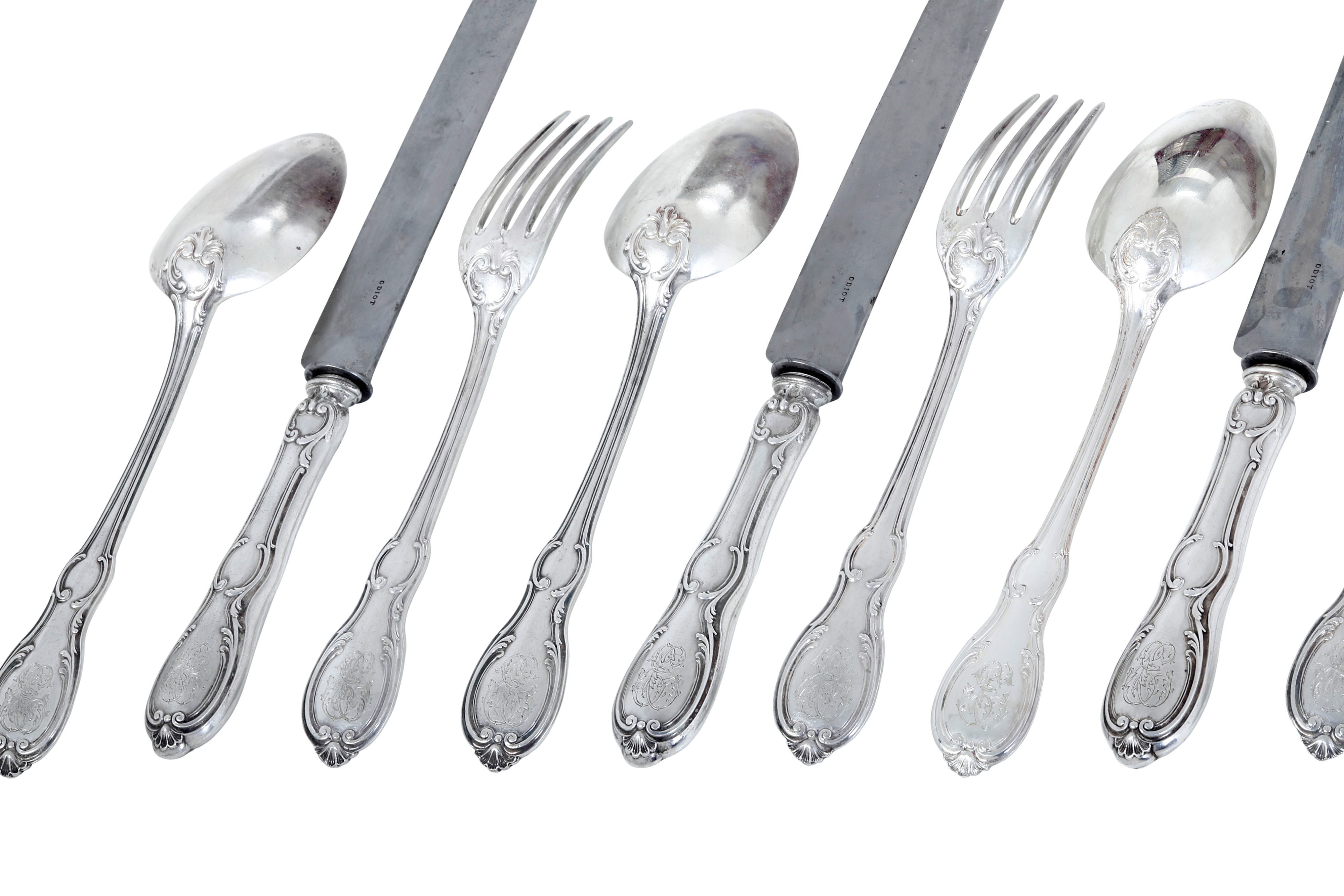 Eccezionale servizio di posate. Maison Odiot, Parigi seconda metà del XIX secolo. Maestro argentiere Charles-Nicolas Odiot (1789-1868) e Jean Granvigne