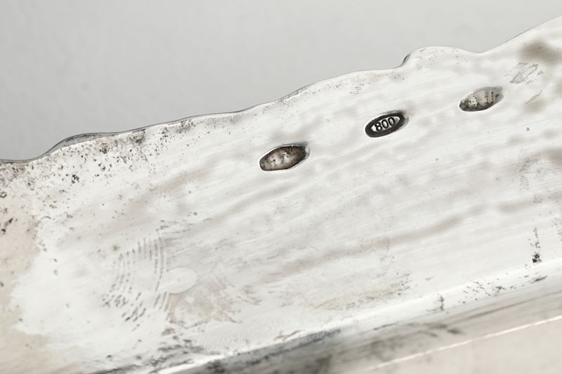 Grande vassoio. Argenteria artistica italiana del XX secolo. Marchi dell'argentiere consunti di difficile lettura