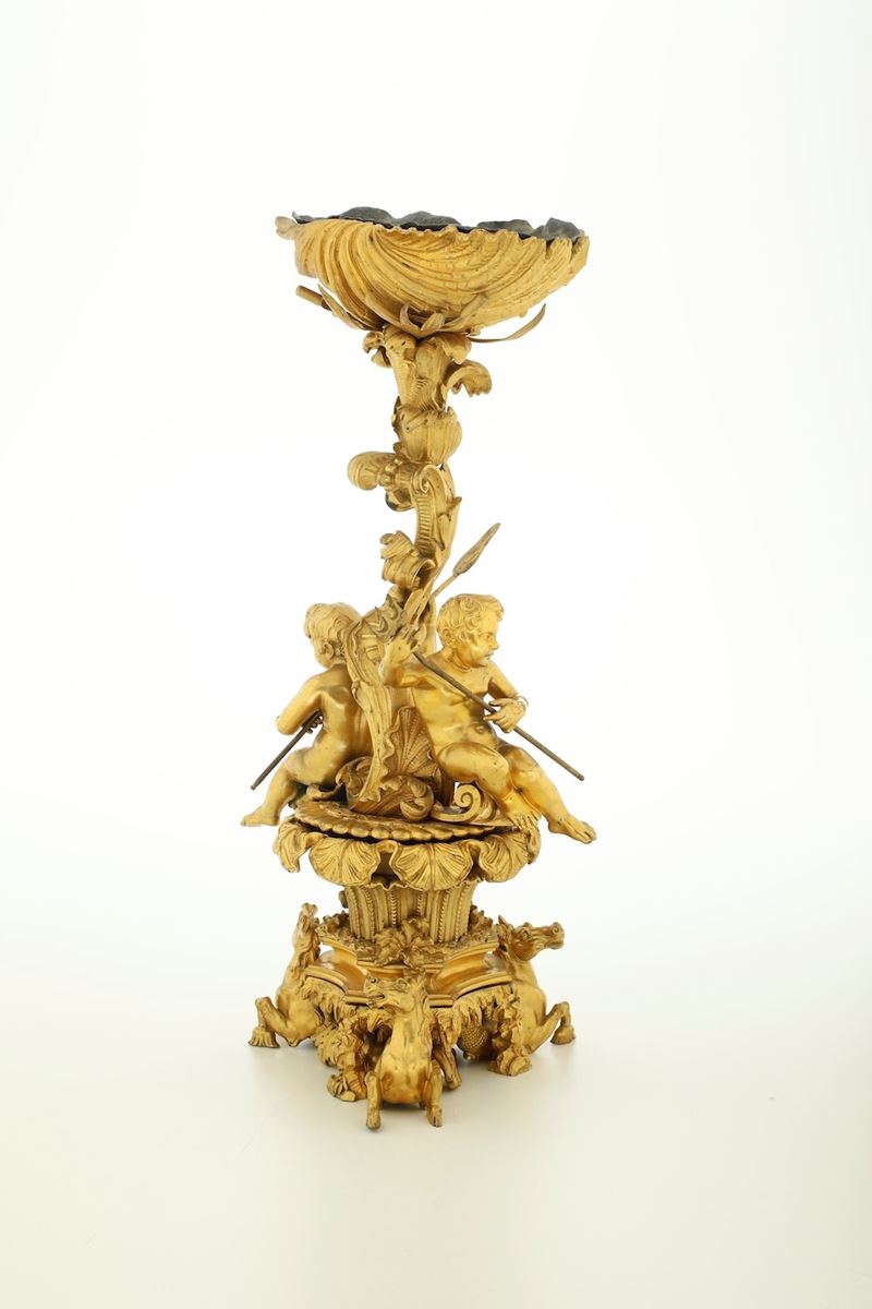 Maestoso surtout de table di gusto neobarocco. Francia XIX secolo