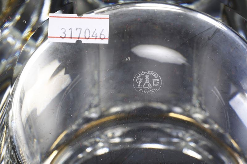 Cristallo. Marca: simbolo grafico della manifattura e "Baccarat France" inciso all'acido. Dimensioni: altezza cm 28,3; diametro cm 23,9.Conservazione: ottima. Scatola originale
