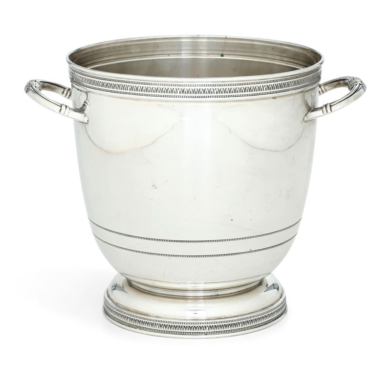 Secchiello porta champagne. Argenteria italiana del XX secolo. Argentiere Rino Greggio, Padova