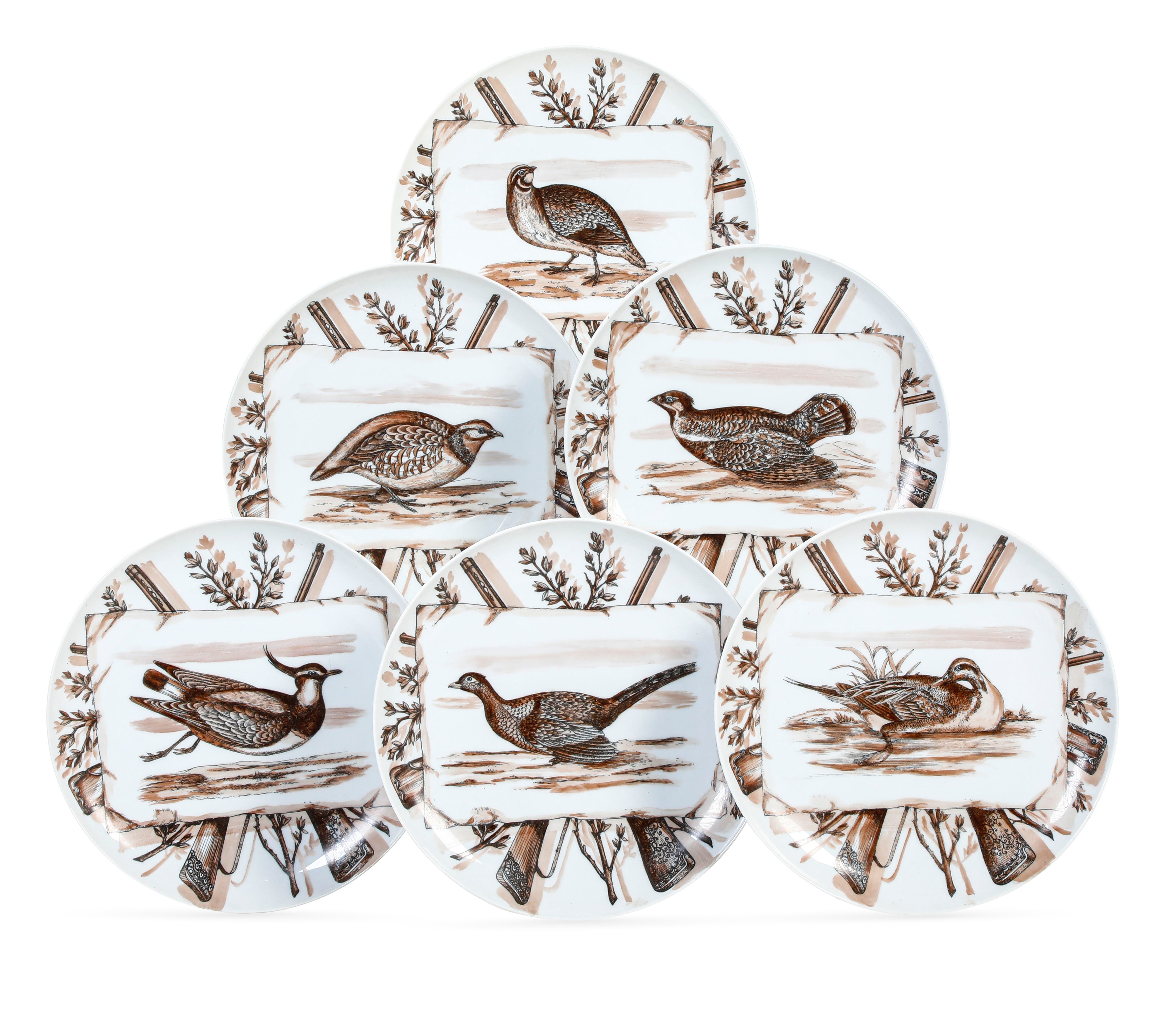 Dalla serie “Caccia” presentano un decoro a uccelli serigrafato in color seppia