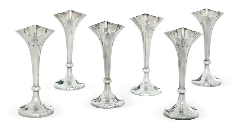 Sei segnaposti a vaso. Edimburgo inizi XX secolo, argentiere Hamilton & Inches