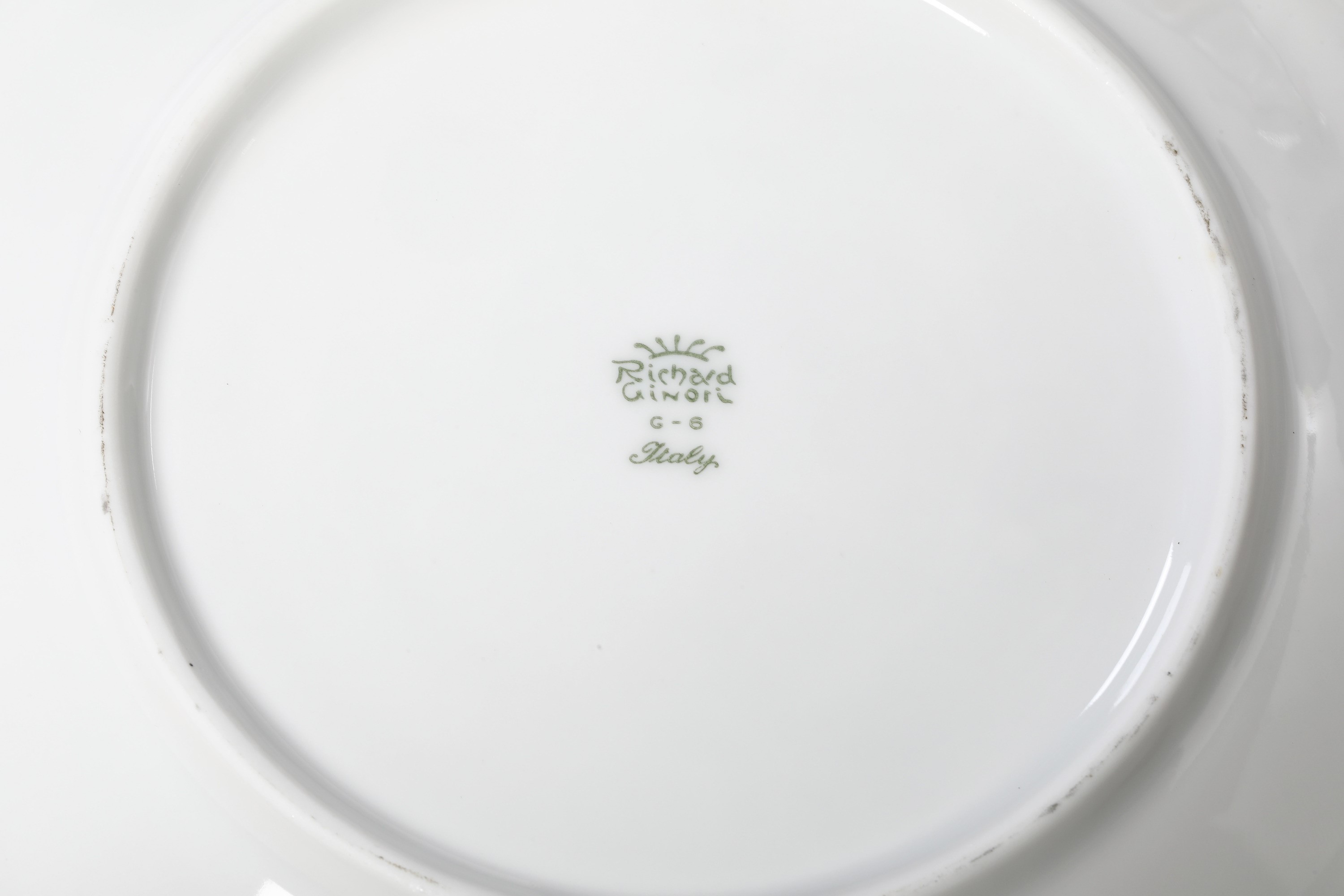 Porcellana. Marca: “Richard Ginori” con corona in verde. Conservazione: ottima; 1 piatto da dessert con sbeccatura