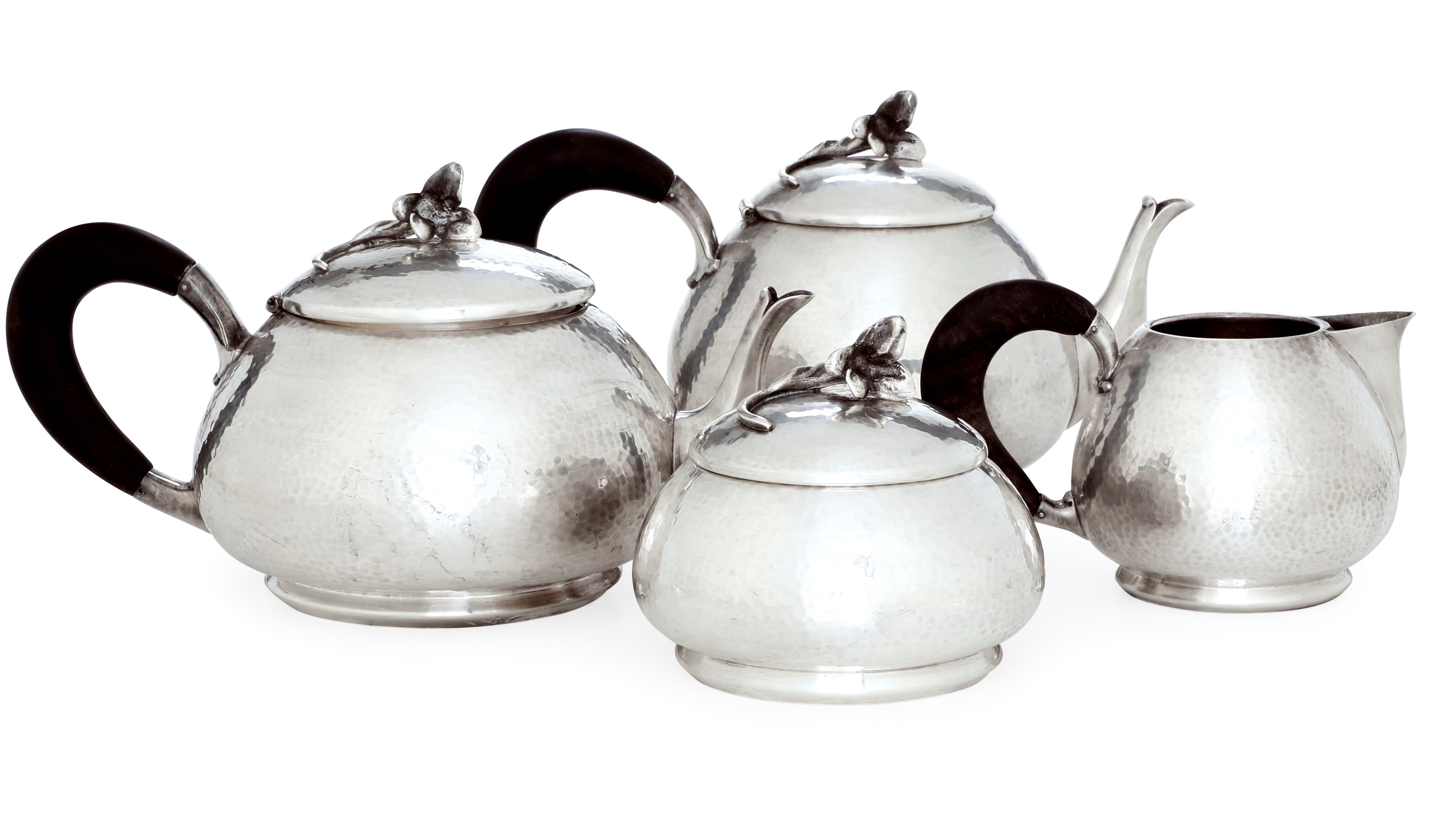 Servizio da tè e caffè. Argenteria italiana del XX secolo, marchio con fascio littorio in uso dal 1935 al 1945, argentiere Cesa, Alessandria