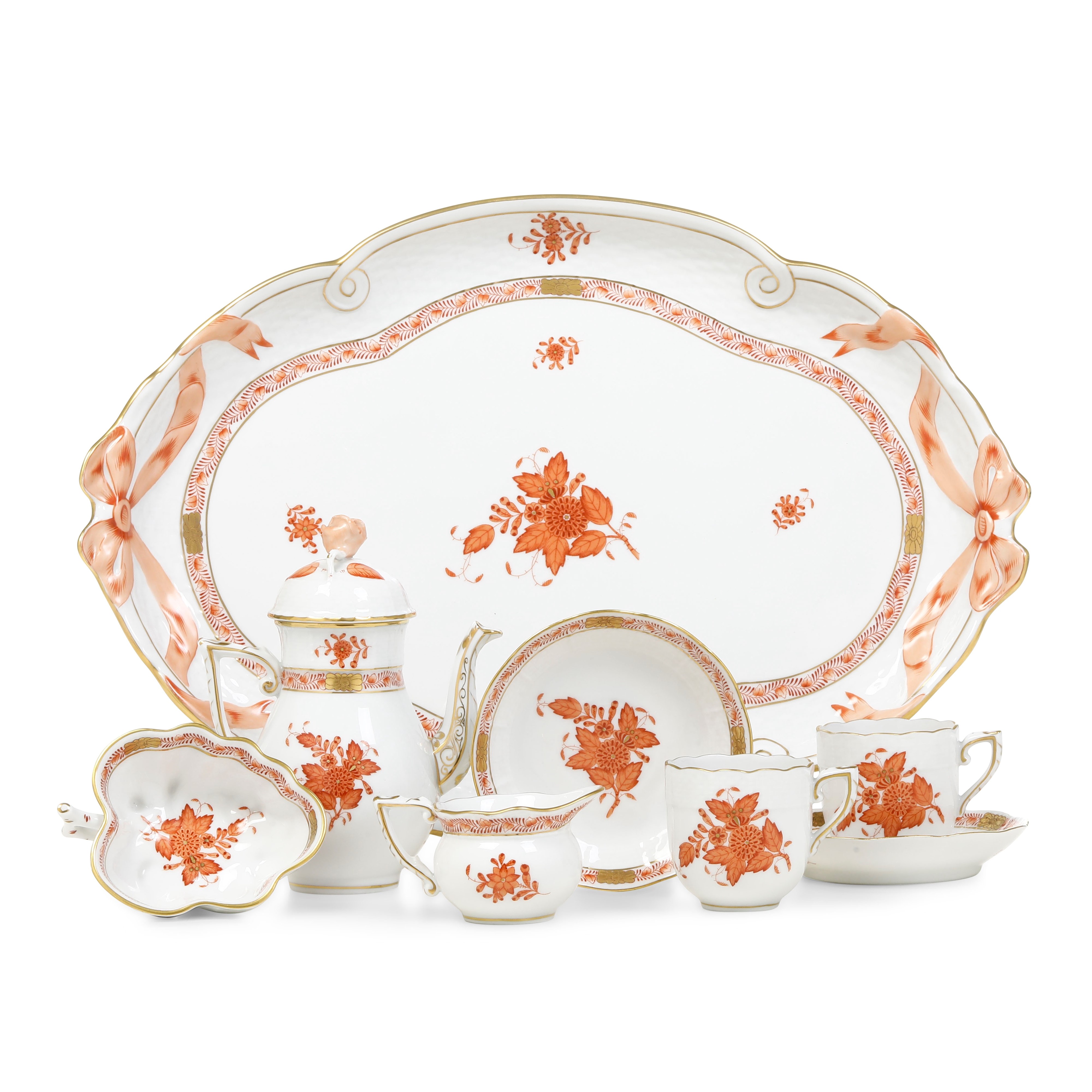 Servizio tête-à-tête da caffè "Appony Orange" Ungheria, Manifattura Herend, metà del XX secolo Per Candida Tupini, Napoli [..]