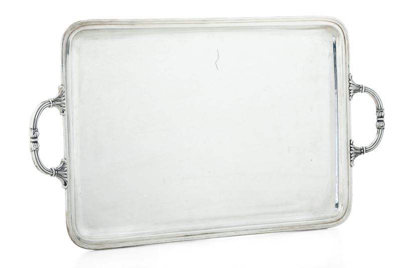 Vassoio biansato. Argenteria milanese del XX secolo. Argentiere Alignani