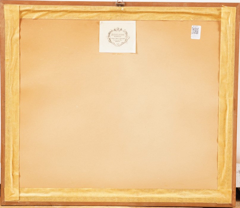 Piacevole e grande carta della Liguria, arricchita da molte figure e scene allegoriche. Bella coloritura. Nella parte inferiore è raffigurata una veduta di Genova vista dal mare. Margine inferiore rinforzato. Entro cornice in legno