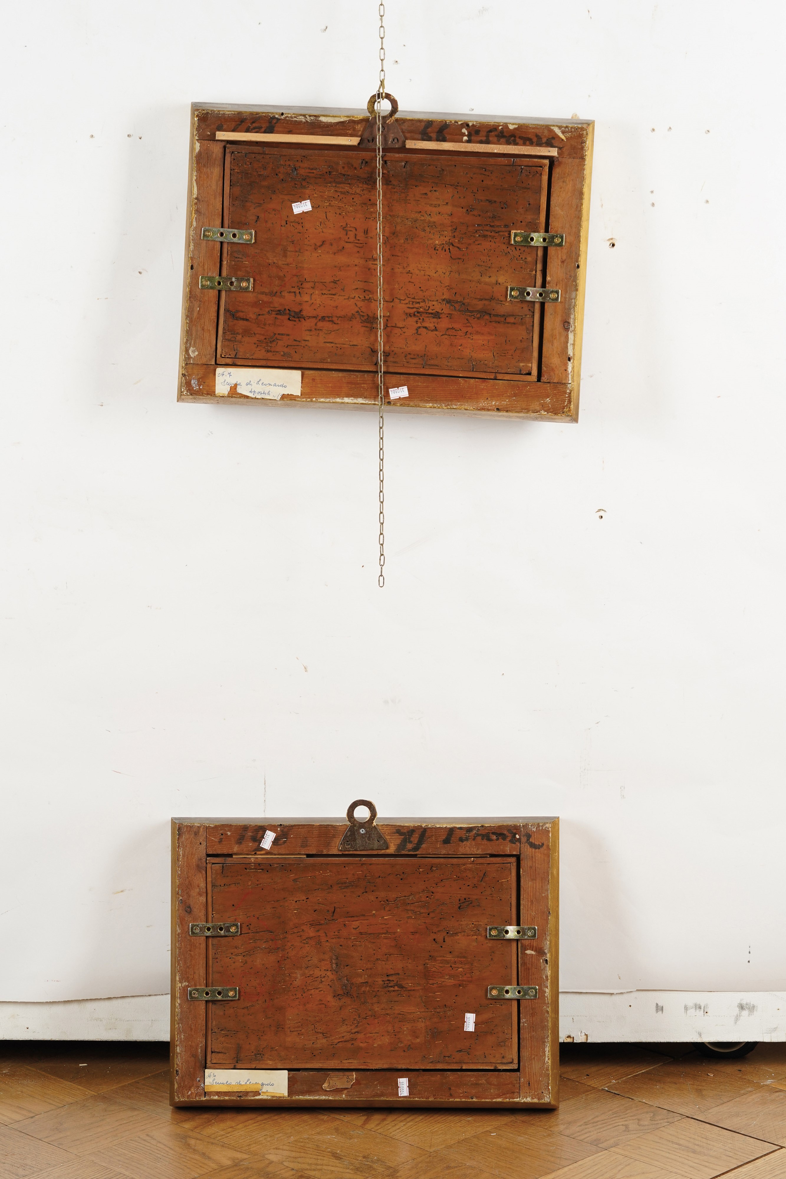 Si segnala che Franco Moro, all'interno della sua pubblicazione 'Due fratelli, due differenti percorsi. Martino e Alberto Piazza' (in 'Studi di Storia dell'Arte', n. 8, 1997, pp. 69-184), ha proposto di riconoscere l’autore degli affreschi nella volta dell’oratorio dell’Immacolata Concezione di Rivolta d’Adda, e il relativo problema del Maestro, con gli esordi della carriera di Martino Piazza da Lodi. In una fase iniziale ancora particolarmente legata al fratello Alberto. Le due tavolette in vendita, presentando caratteri ispirati ai volti leonardeschi raffigurati in tale contesto, sembrano pertanto riconducibili a Martino Piazza da Lodi.