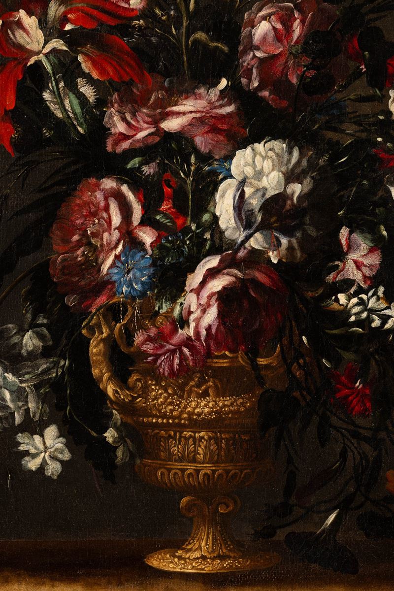 Natura morta con fiori in vaso istoriato