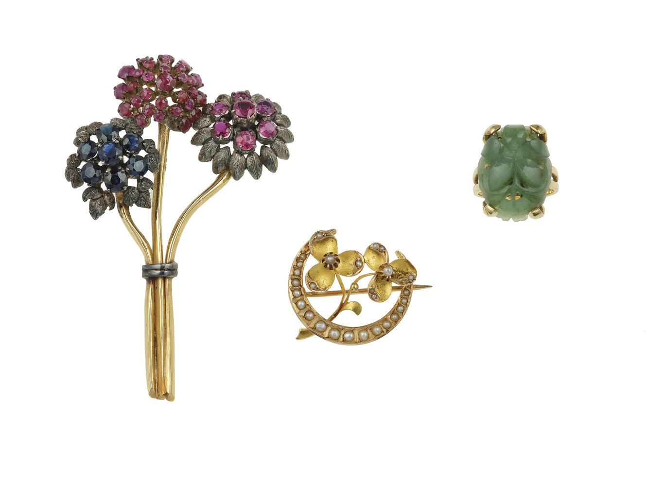 Group of gem-set, gold and silver jewels