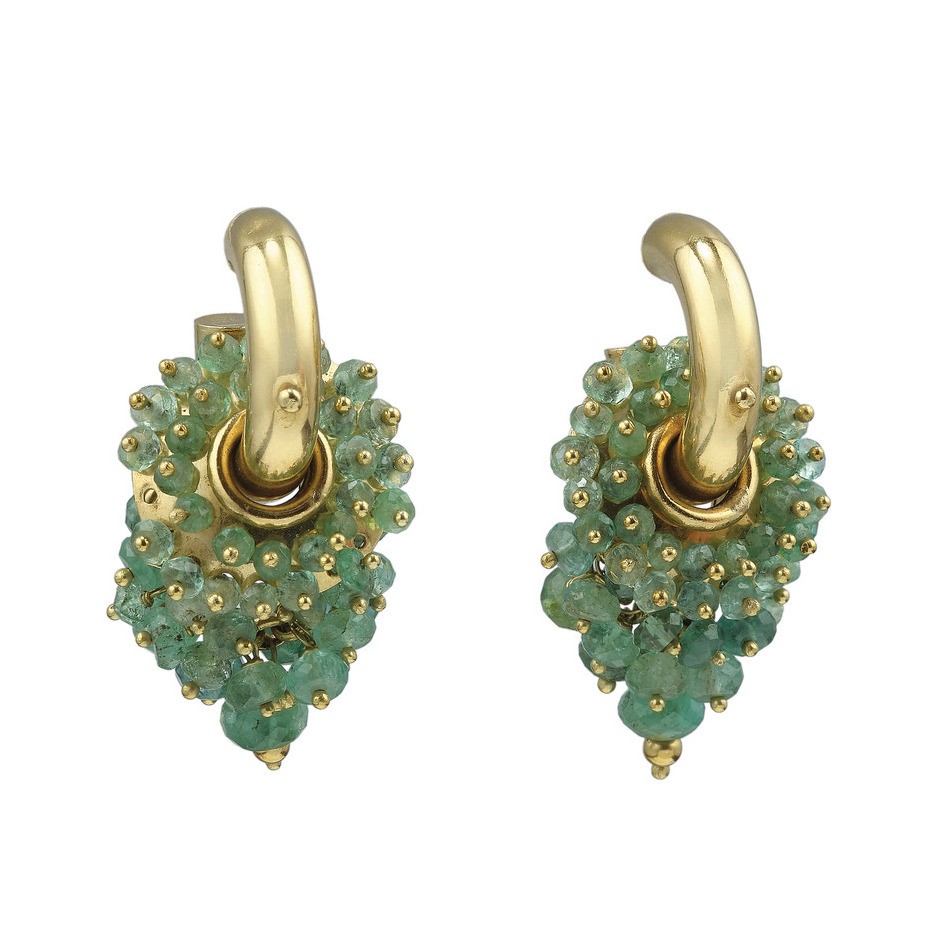 Pair of emerald and gold earrings