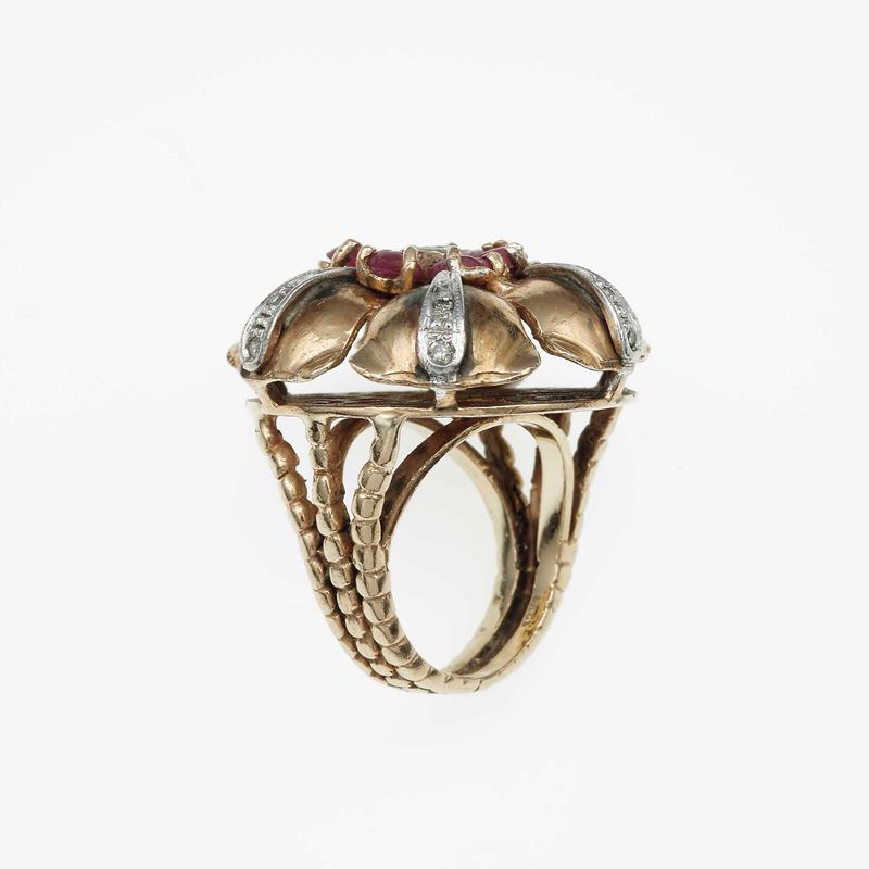 Ruby, diamond and low karat gold ring