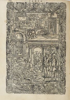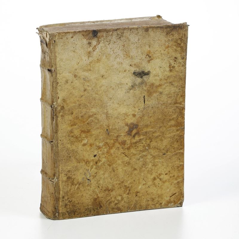 In-4°. Rilegatura antica in piena pergamena semi-floscia del secolo XVII. Esemplare un poco rifilato, soprattutto sul margine superiore. Annotazioni manoscritte che riguardano gli argomenti dei canti alle ultime 3 carte bianche. Esemplare discreto con le tavole fresche e ben inchiostrate