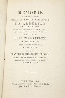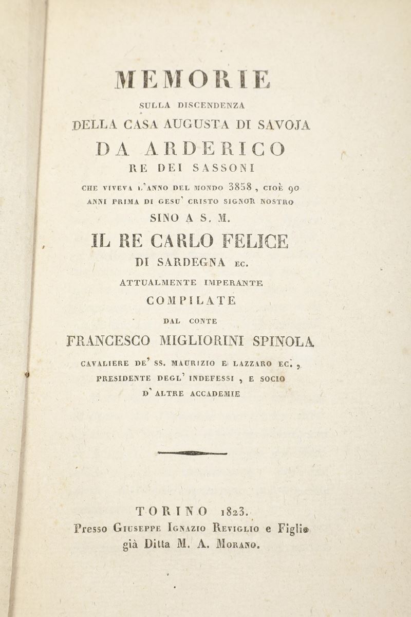 5) Francesco Migliorini Spinola Memorie sulla discendenza della casa augusta Savoia da Arderigo... Torino 1823