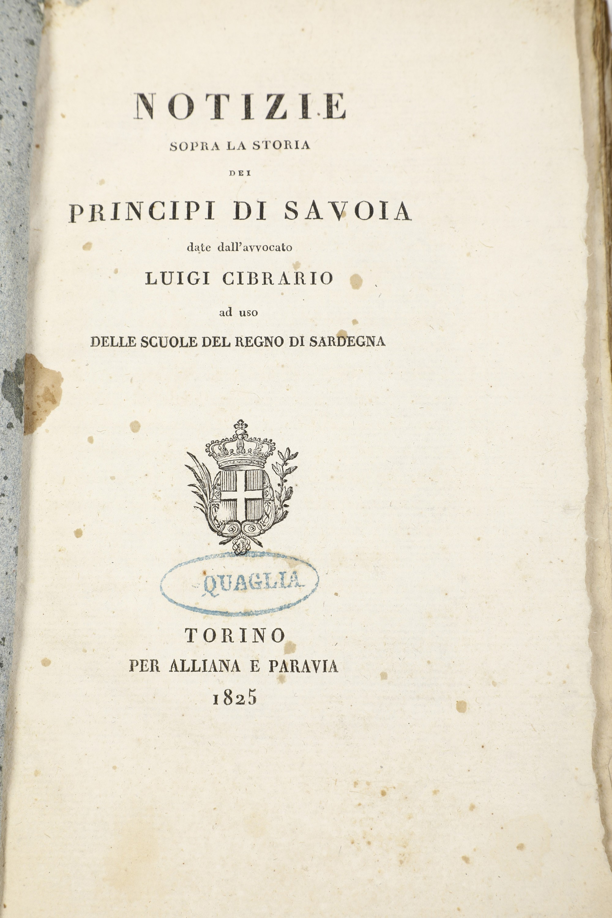 6) Luigi Cibrario Notizie sopra la storia dei Principi di Savoia Alliana e Paravia Torino 1825