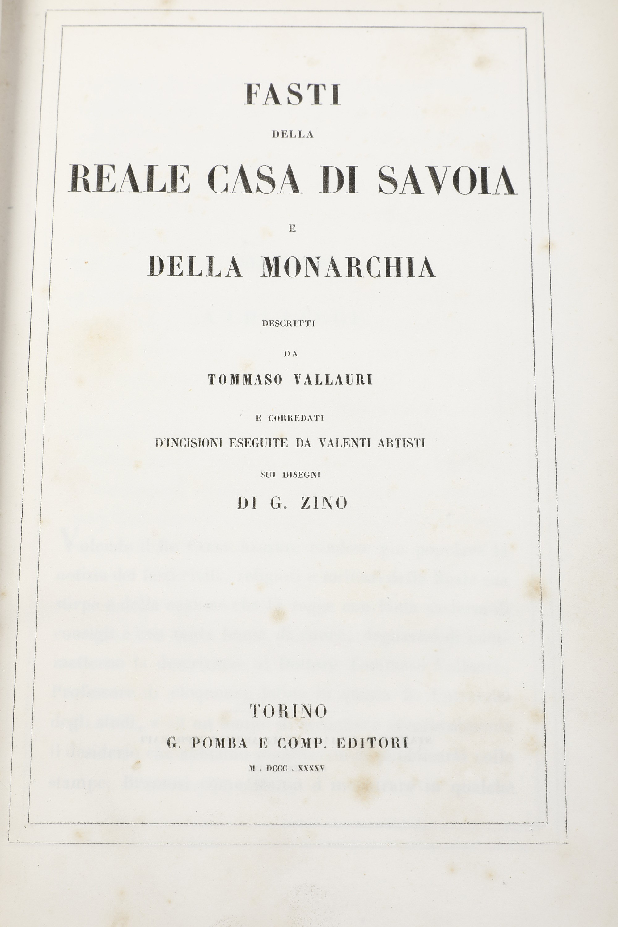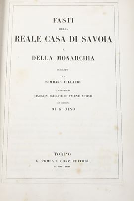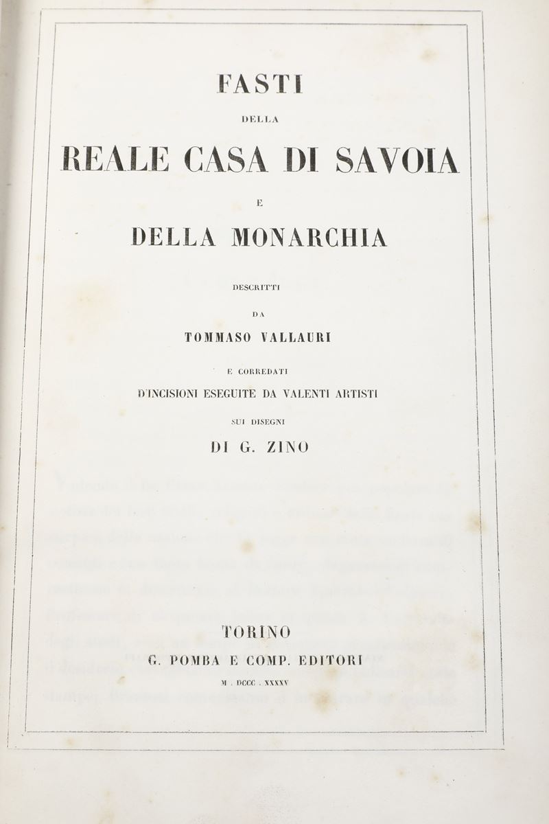 3) Tommaso Vallauri Fasti della reale Casa di Savoia e della monarchia descritti da Tommaso Vallauri e corredati d'incisioni eseguite da valenti artisti su disegni di G. Zino;