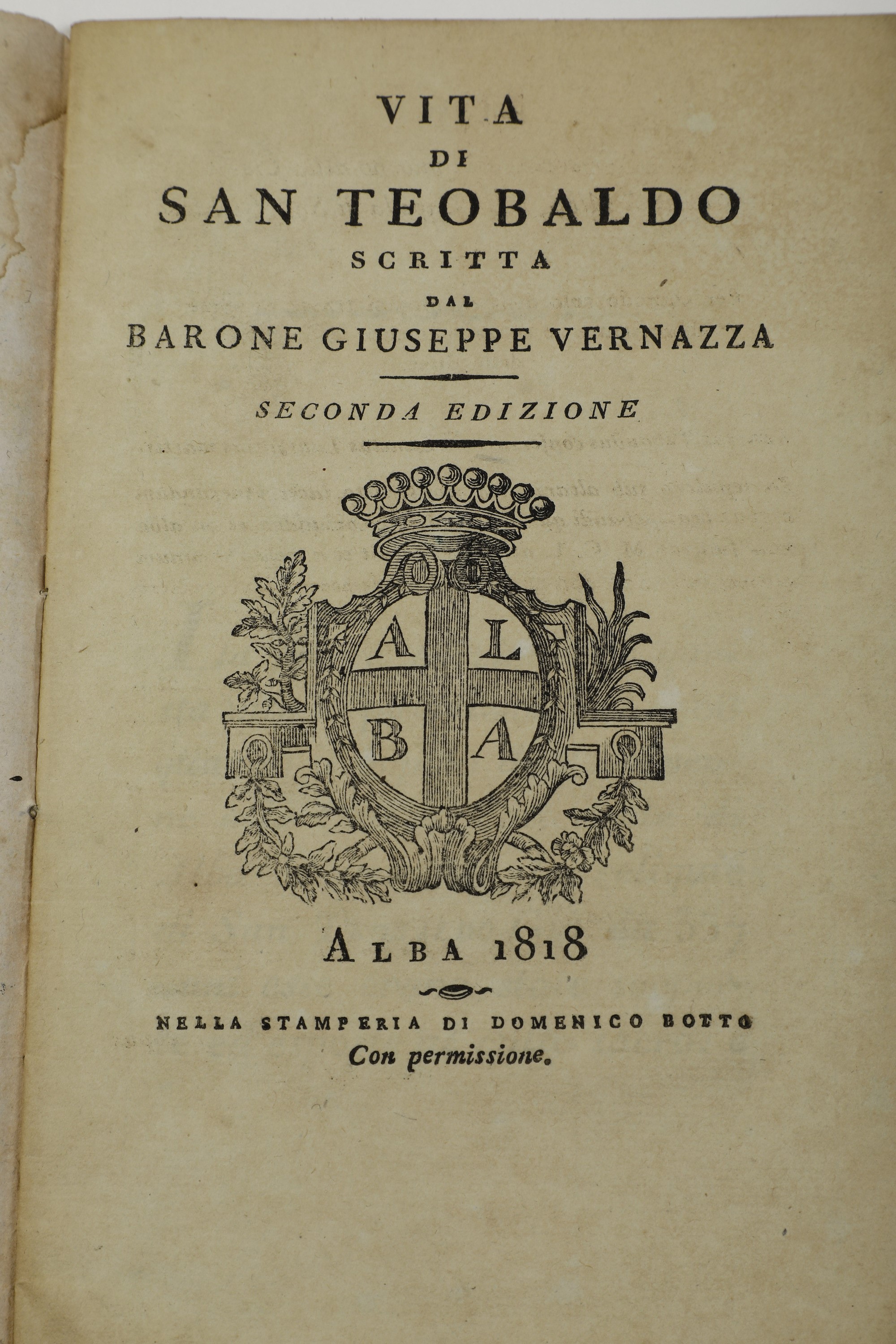 6) Vita di San Teobaldo scritta dal Barone Giuseppe Vernazza Seconda edizione Nella Stamperia di Domenico Botto Alba 1818;