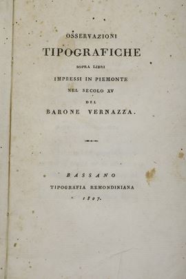 2) Osservazioni tipografiche sopra i libri impressi in Piemonte nel sec. XV... Tip. Remondiniana Bassano 1807