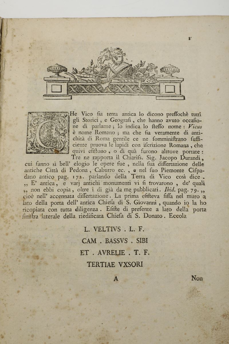 Luca Lobera Delle antichità della terra, castello, e chiese di Vico e dell'origine della città di Mondovì Dissertazione