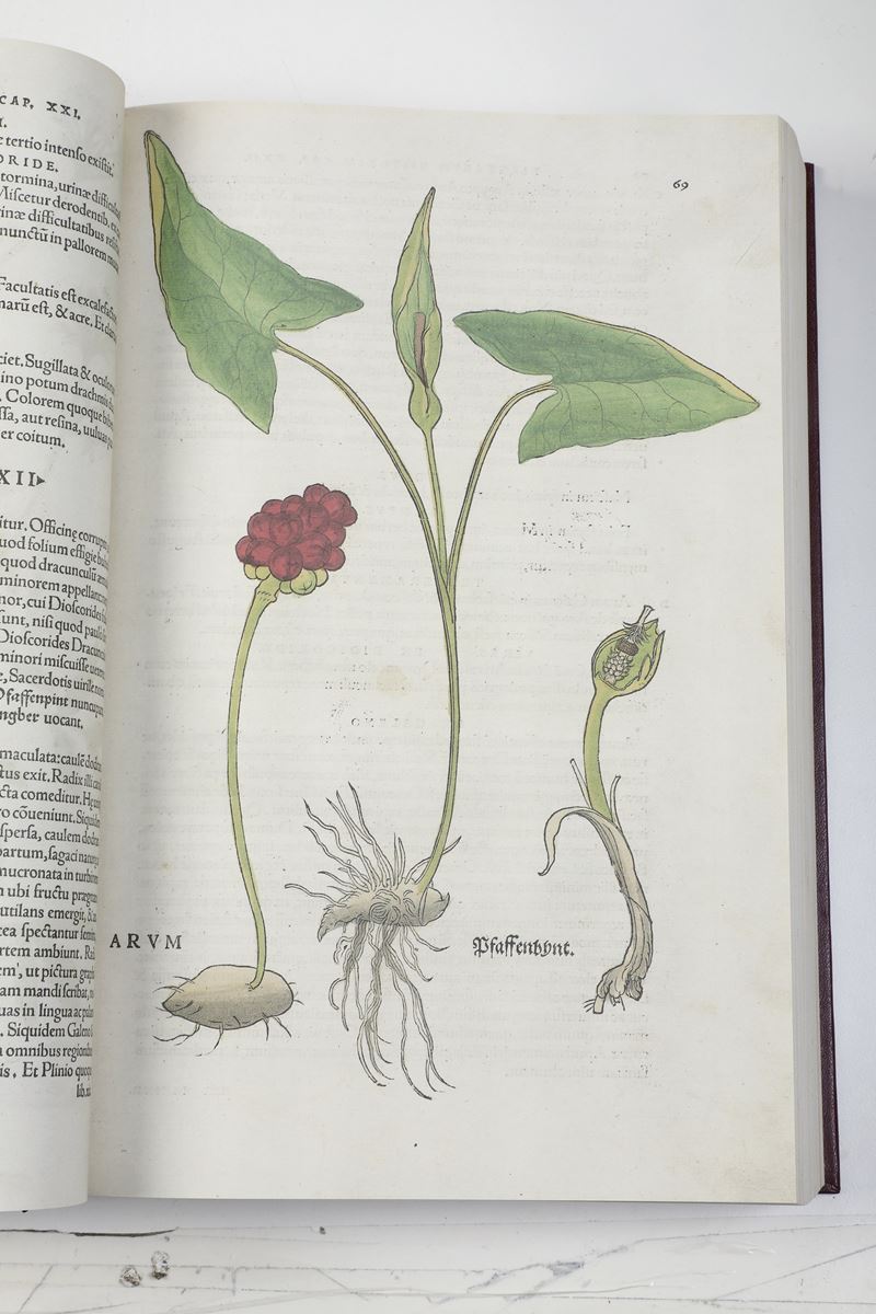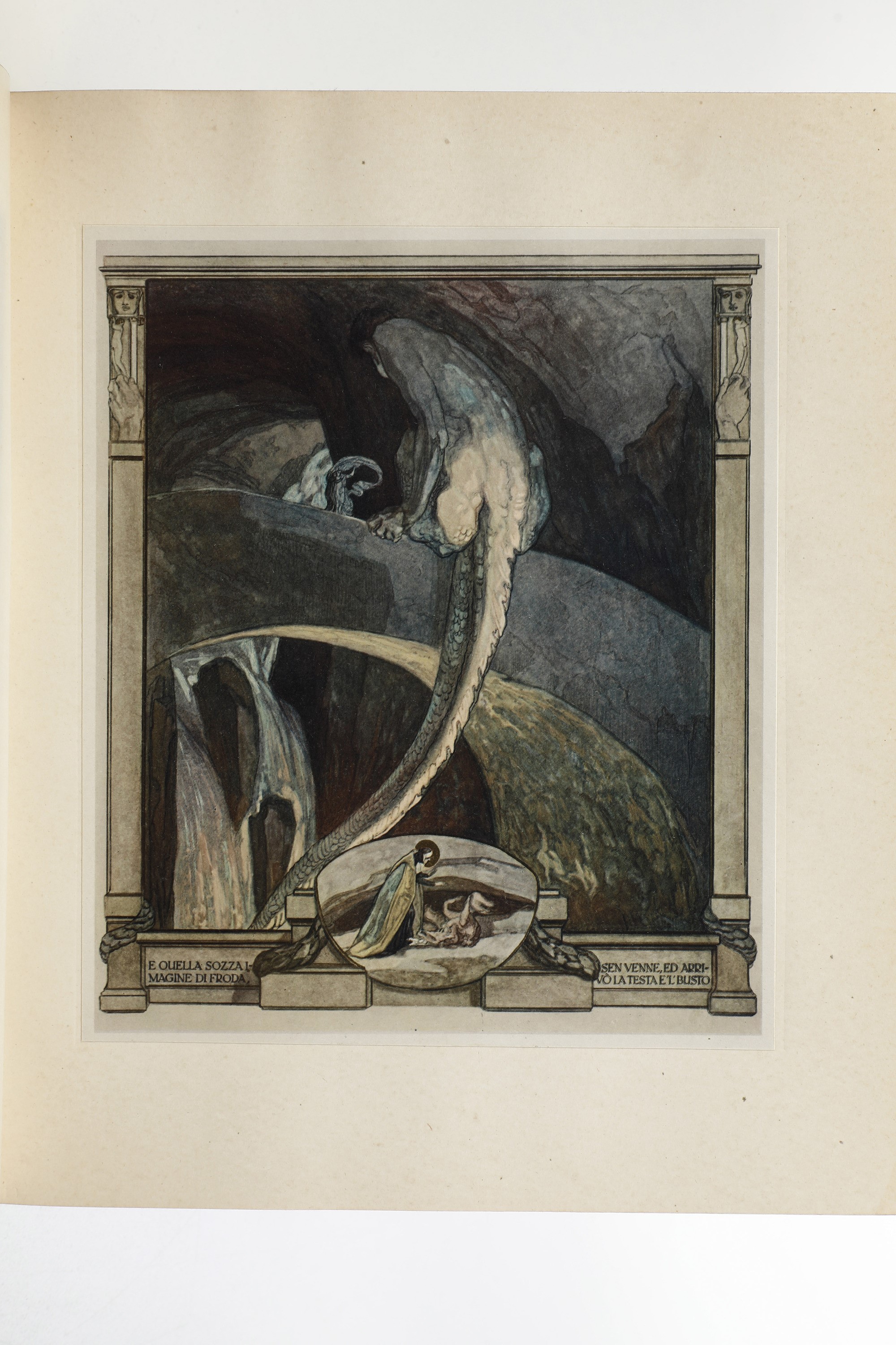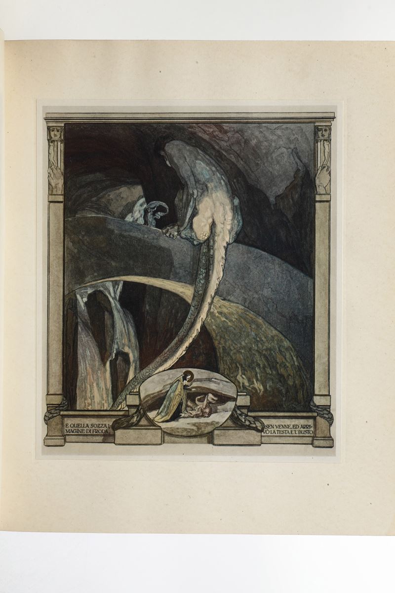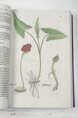 In-4°. Bella rilegatura coeva con ricchi fregi in oro e impressioni a secco (abrasioni e rotture a un piatto). Si uniscono nel lotto: Discorsi e proclami di Vittorio Emanuele II, Roma, Tipografia del senato, 1868 (bella rilegatura policroma con armi de casa Savoia); Dante Alighieri, La Divina Commedia, illustrata a colori da Franz Von Bayros... Amalthea, Zurigo, Lispia, Vienna, 1921. Esemplare appartenente alla tiratura di 250 esemplari con testo in italiano soltanto. Bella edizione celebrativa pubblicata nel sesto centenario della morte del poeta; De Historia Stirpium Commentari Insignes...edizione anastatica di un esemplare con tavole a colori del XVI secolo