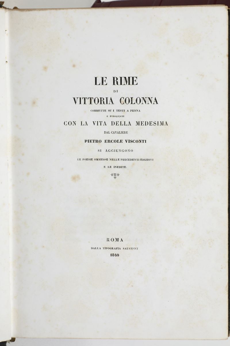 Quattro opere diverse dei secoli XIX e XX Vittoria Colonna, Rime... Roma, Tipografia Salviucci, 1840