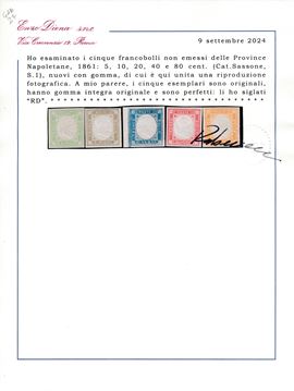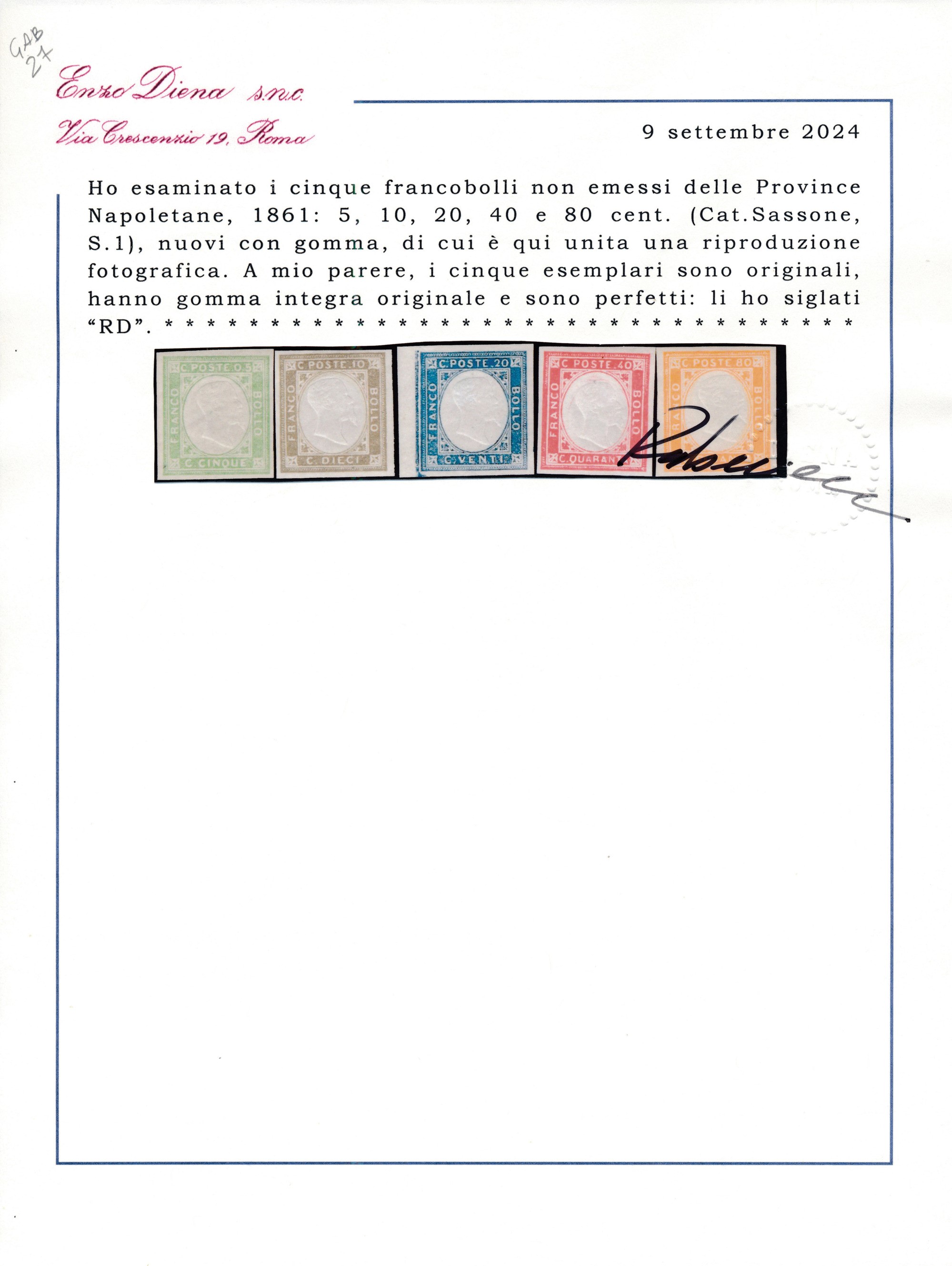 1861 – Napoli – Province napoletane – Non emessi – Serie completa con gomma integra (Sass. S.1).