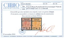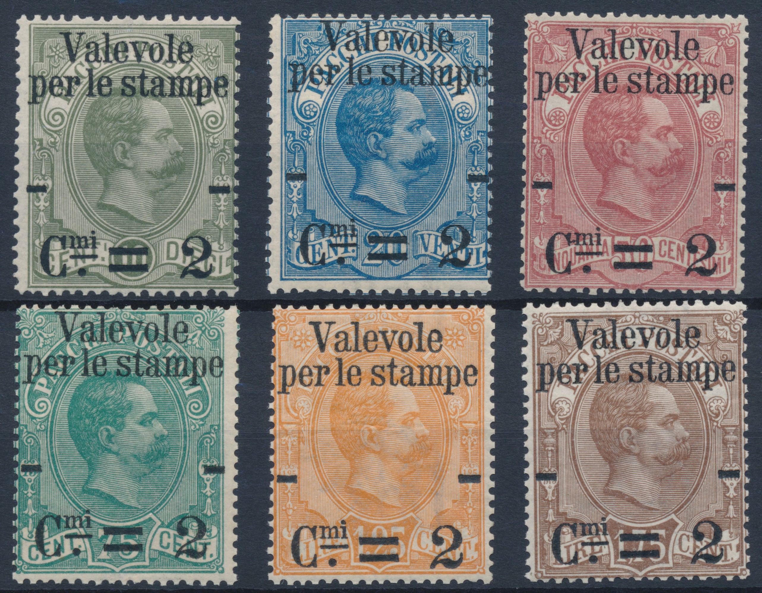 1890 – Regno d’Italia – Francobolli per pacchi postali “Valevole per le stampe”, serie completa, gomma integra (Sass. S.6).