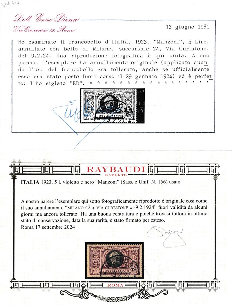 Cert. En.Diena e oro Raybaudi.