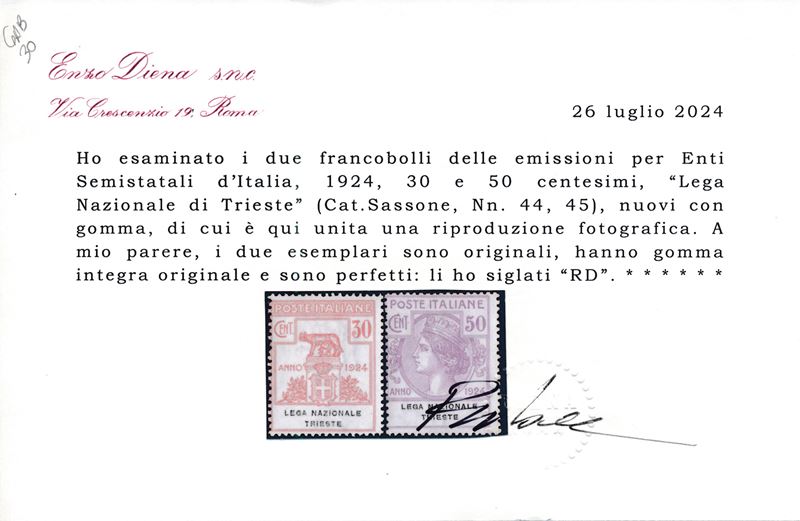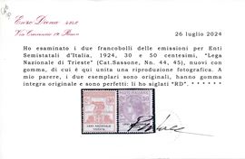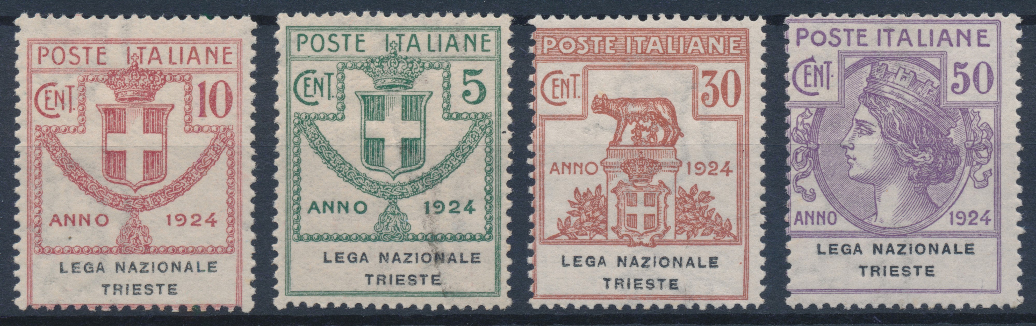1924 – Regno d’Italia – Enti parastatali – “LEGA NAZIONALE TRIESTE” serie cpl. (Sass. S.2908).
