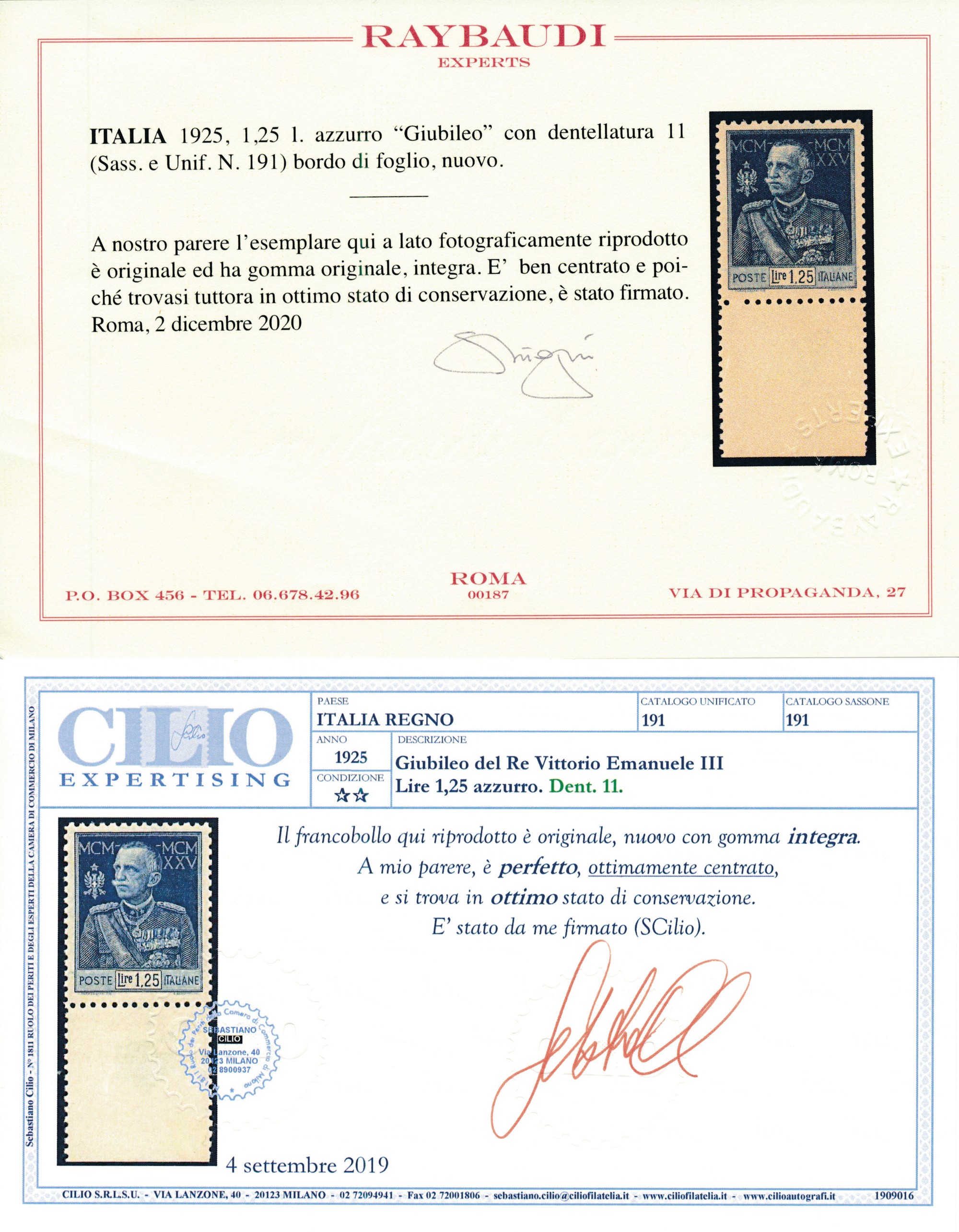 Cert. Raybaudi e Cilio per l’1,25 dent. 11.