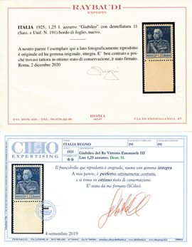 1925-26 – Regno d’Italia – Giubileo del Re, le due serie complete dent. 13½ e 11, gomma integra (Sass. S.36 e S.37).