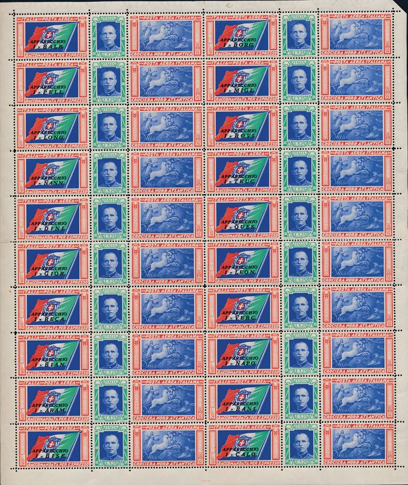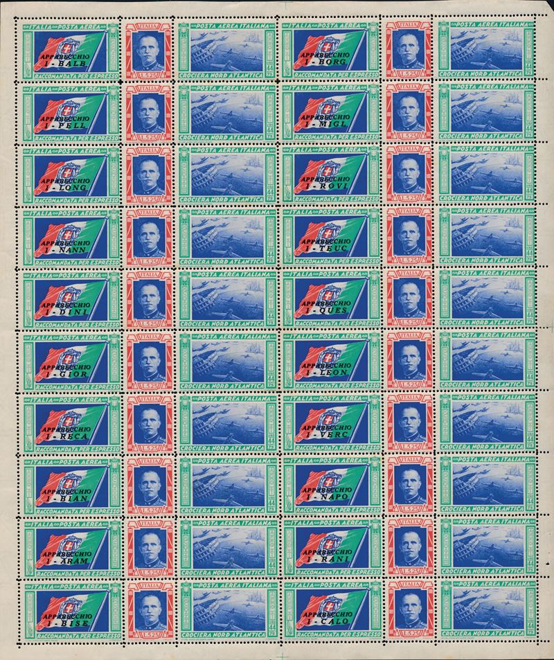 1933 – Regno d’Italia – Posta Aerea – Crociera aerea del Decennale – Trittici - La serie in due fogli completi (Sass. 51 [..]